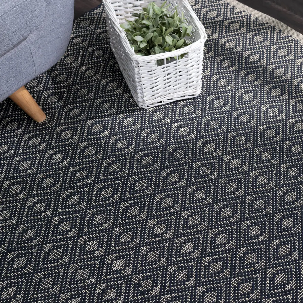 Optic Diamond Handwoven Cotton Rug | Navy/ivory