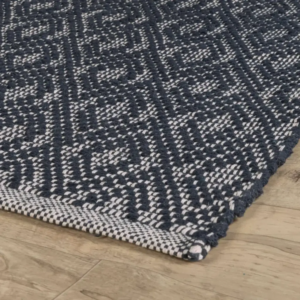 Optic Diamond Navy/ivory Handwoven Cotton Rug
