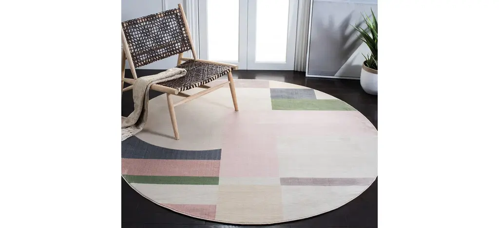Flamboyant and refined, the Opula Round Area Rug provides the audacious spirit of Art Deco design. Displaying block geometrics, colorful mosaics and artfully layered shapes, it beams with cosmopolitan flare. Made using soft, synthetic yarns in a medium cut pile for lasting beauty and comfort.