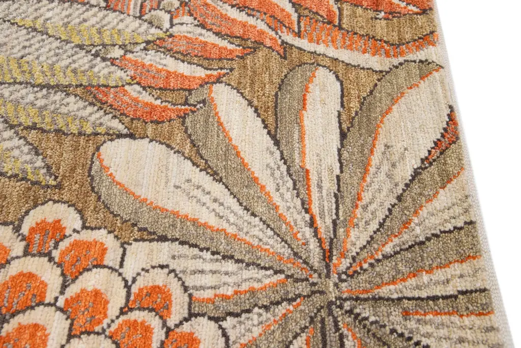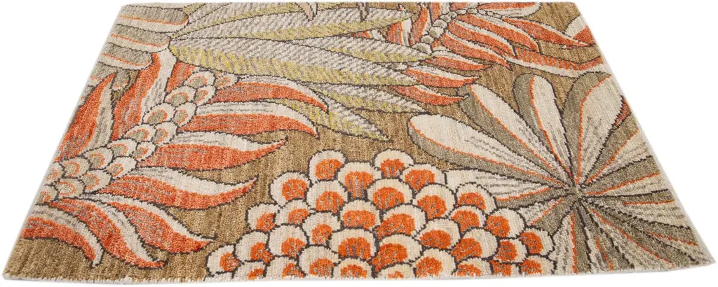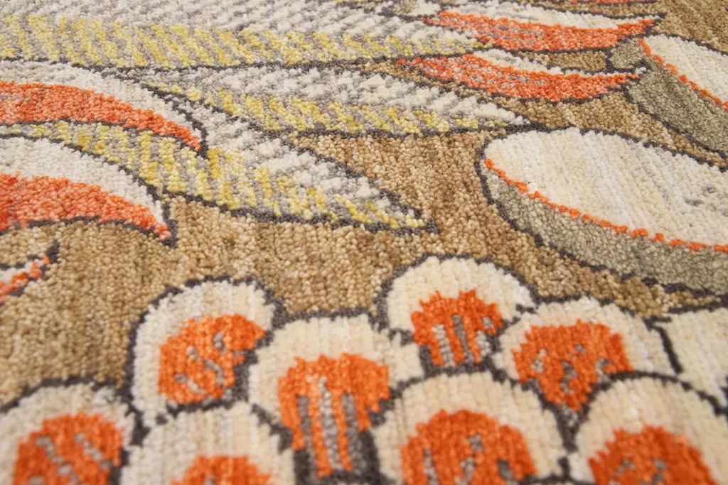 Orange Modern Handmade Floral Custom Wool And Silk Rug