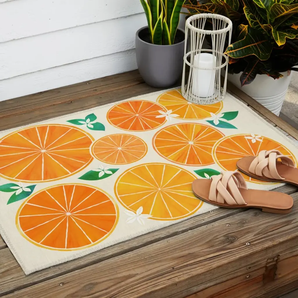 Orange Slices With Blossoms Outdoor Rug