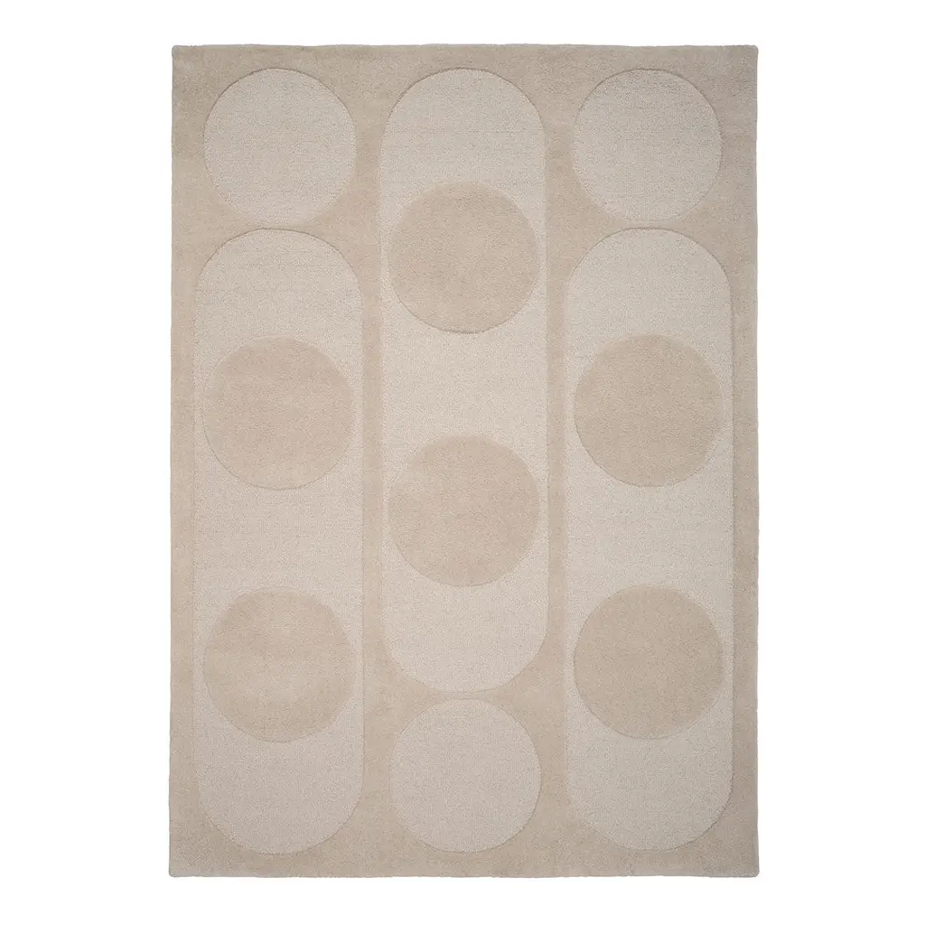 Exploration of pile depths create an intriguing contrast of negative and positive shapes in Orb Alliance, with the circles and rounded lines bringing an organic softness to the expression. The deep wool pile adds natural warmth and comfort to the interior space, whilst ensuring the rug's longevity and resilience.
