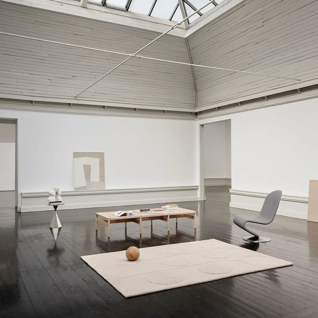 Exploration of pile depths create an intriguing contrast of negative and positive shapes in Orb Alliance, with the circles and rounded lines bringing an organic softness to the expression. The deep wool pile adds natural warmth and comfort to the interior space, whilst ensuring the rug's longevity and resilience.