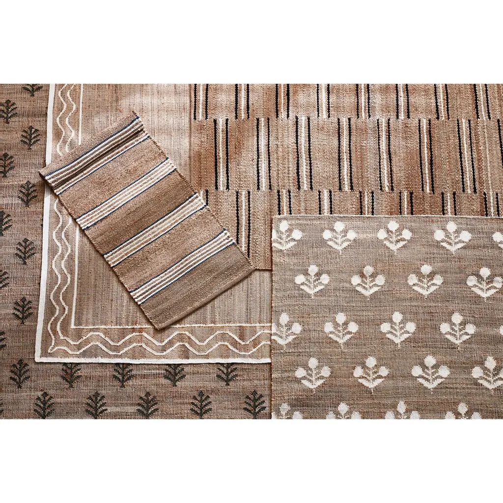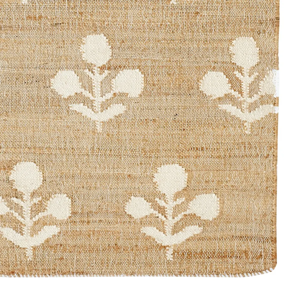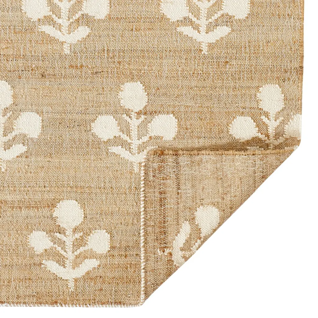 Exclusive to One Kings Lane: Flowers reminiscent of those found in classic Indian block prints bloom against the neutral ground of this handcrafted rug. Made of soft, durable wool and jute, the rug is a welcome addition to just about any space. A rug pad is recommended to help prevent slipping and extend the life of the rug.
