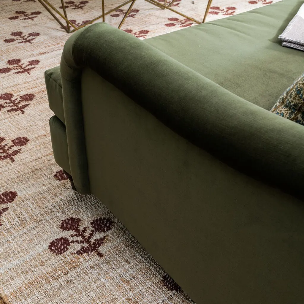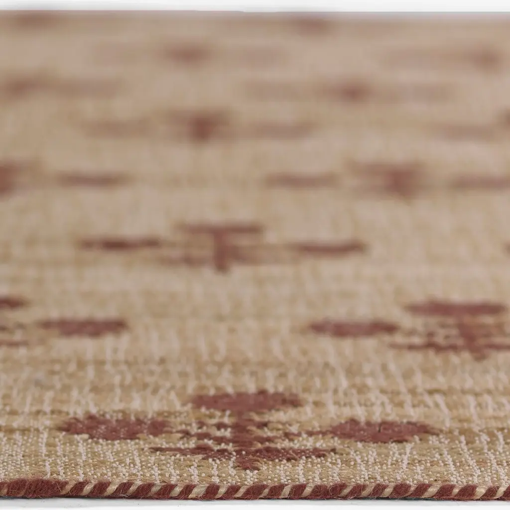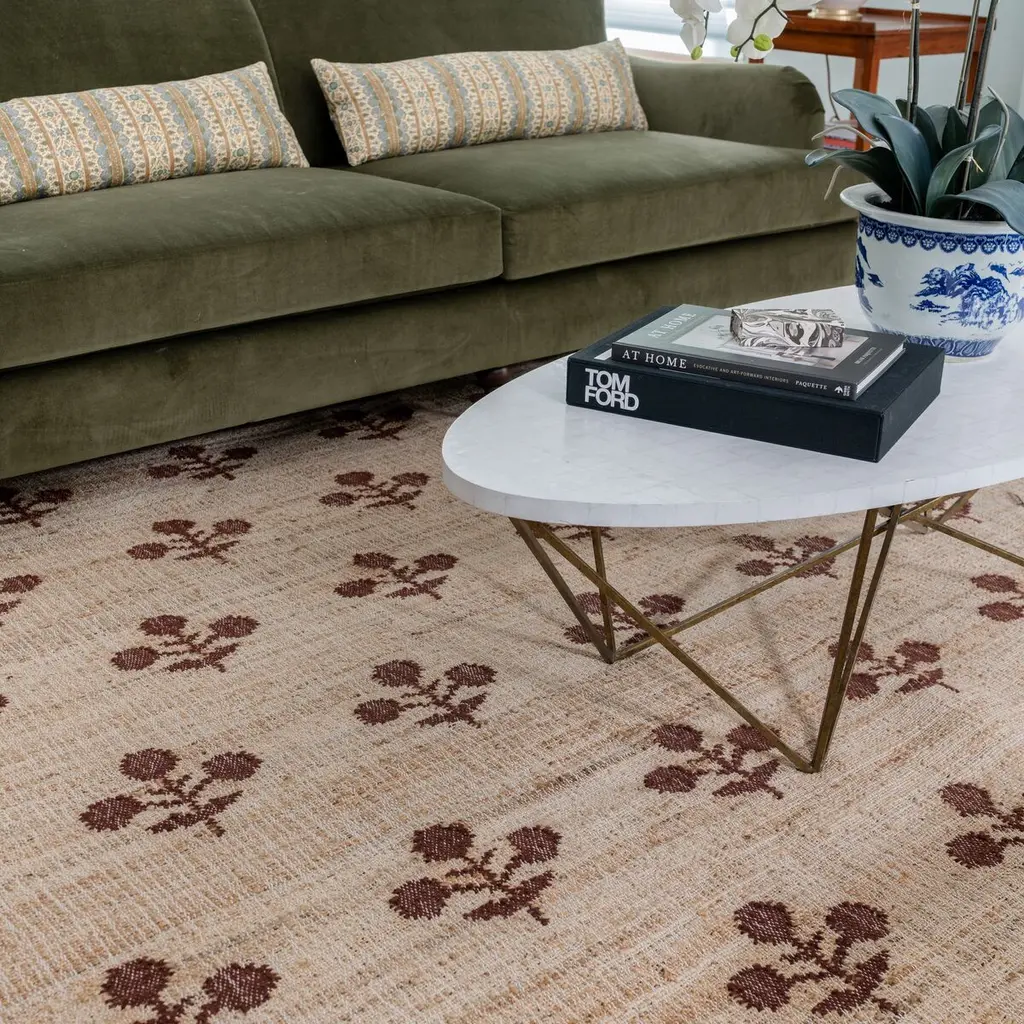 Flowers reminiscent of those found in classic Indian block prints bloom against this rug's neutral ground. Handwoven of soft, durable wool and jute, the rug is a welcome addition to just about any space. A rug pad is recommended to help prevent slipping and extend the life of the rug.