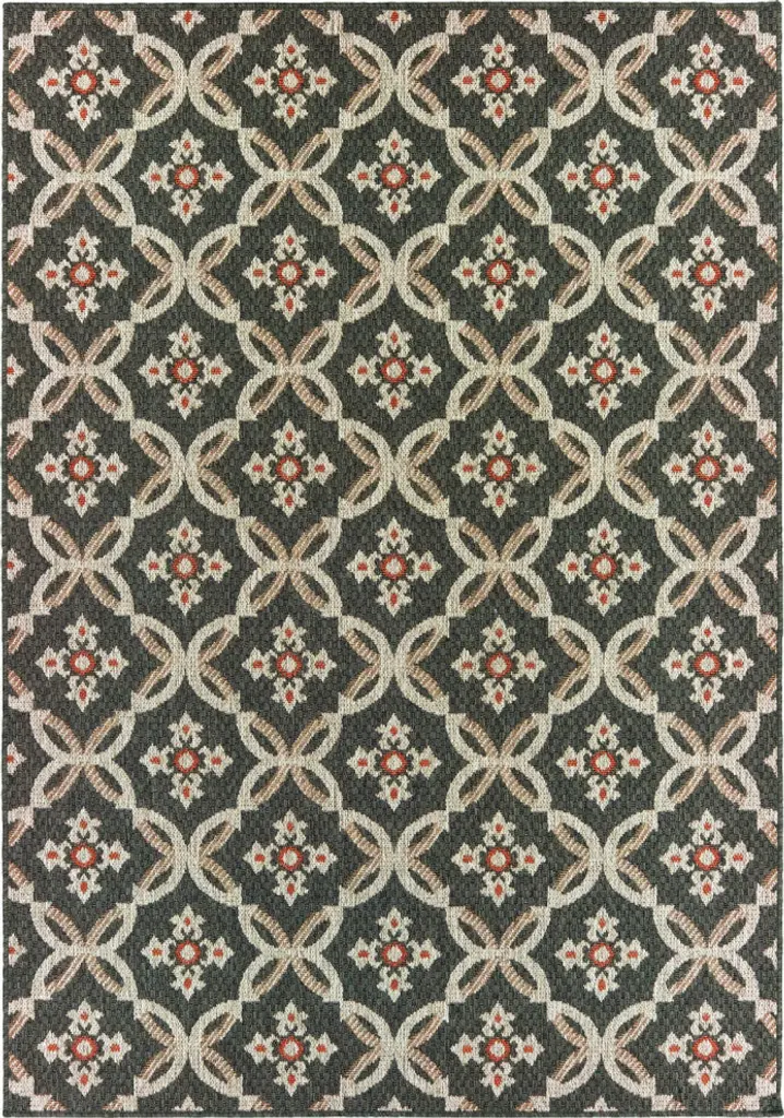 The Latitude collection showcases sophisticated designs ranging from traditional tile and medallion patterns to simple modern borders and geometrics. Multi-colored yarns in neutral grays, accented by tones of deep navy and vibrant persimmon, add texture and a pop of color underfoot. Machine-woven of polypropylene, Latitude is easy to care for and can be used both indoors and out.• Machine-woven of 100% Polypropylene• Sophisticated designs• Inherently stain resistant• Easy to care for• Woven Polypropylene Backing
