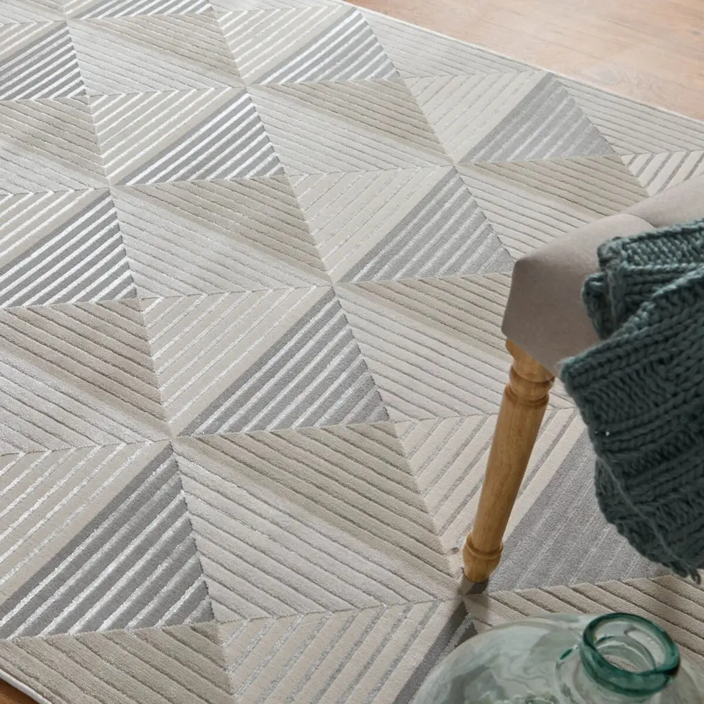 The Orin collection is woven with high-grade shrink polyester fibers adding a subtle depth to the super-soft polypropylene and metallic polyester fibers from Turkey. This is a great rug for a high traffic area in your home. Not only does the geometric patterns in beige, grey, and tan elevate the room but the area rug is easy care while being naturally stain and fade resistant. This area rug is a good addition to your home for transitional and contemporary settings alike.