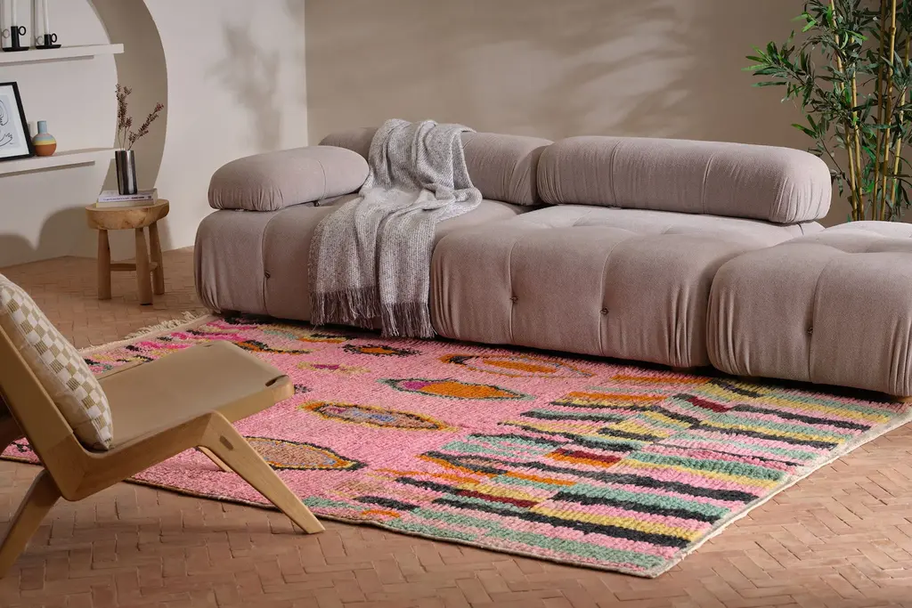 Our Moroccan pieces are each one-of-a-kind. Much of our collection was woven between 30 and 100 years ago, and curated by us. Other rugs in our collection are fresh off the loom and made with traditional techniques. Moroccan rugs don’t come with a key. As with any painting or poem, their motifs have many subjective interpretations. Originally made for personal use, these rugs took months to weave, documenting a shifting tide of events and emotions in the weaver’s life.