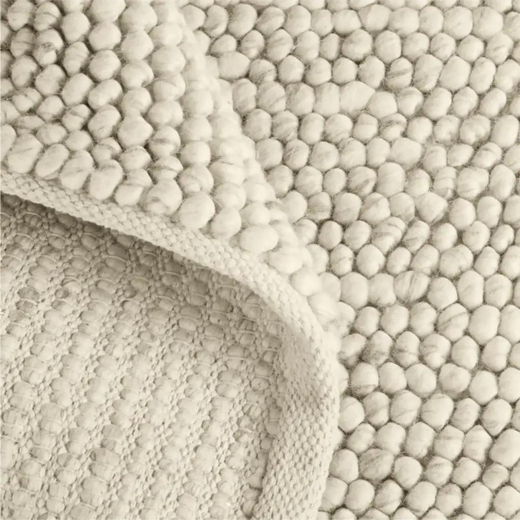 Highlighted by subtle streaks of tan for depth and dimension, chunky loops of creamy wool come together in a stunningly simple rug that stands up to everyday life. Highly skilled artisans craft Orly by hand, weaving the naturally hued, undyed wool - plus a bit of viscose for a sophisticated sheen - into an elevated yet durable area rug that disguises spills thanks to its variegated look. We love the organic warmth of this irresistibly textured ivory rug in a living room, entryway or under a dining table.Try it on first. Because color representation may vary by screen, using a swatch is an easy way to see exactly how your favorite rugs will look in your home. Our rug swatches ship free and can be returned online or at any store for a full refund.6'x9' rugs and 8'x10' rugs can be ordered online and picked up in a store near you. It's fast, easy and free.For larger rugs, order online and arrange a convenient delivery or warehouse pickup.