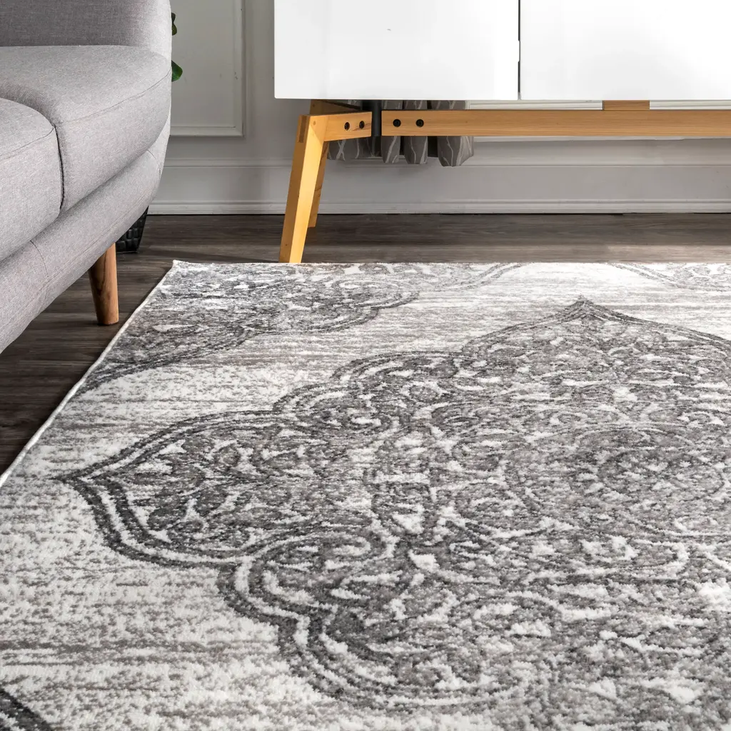 Ornamental Rosette Rug | Grey - 2' 6" X 6'