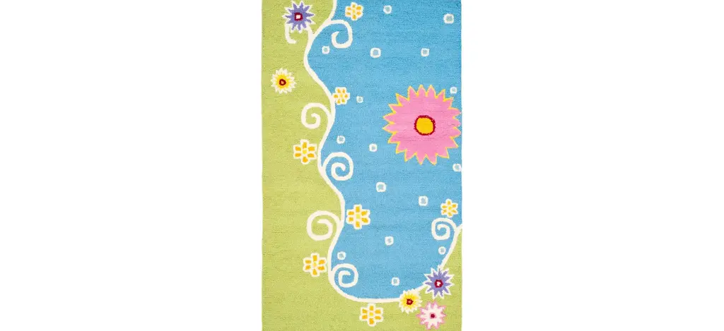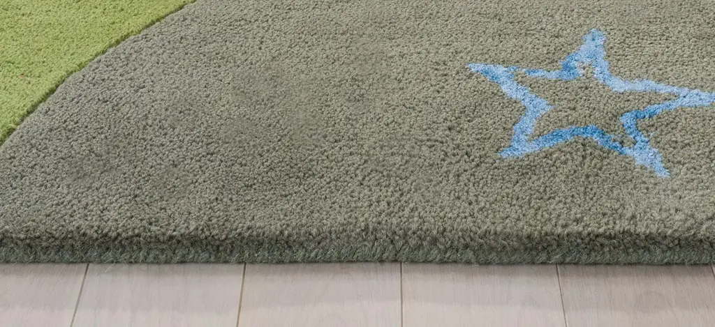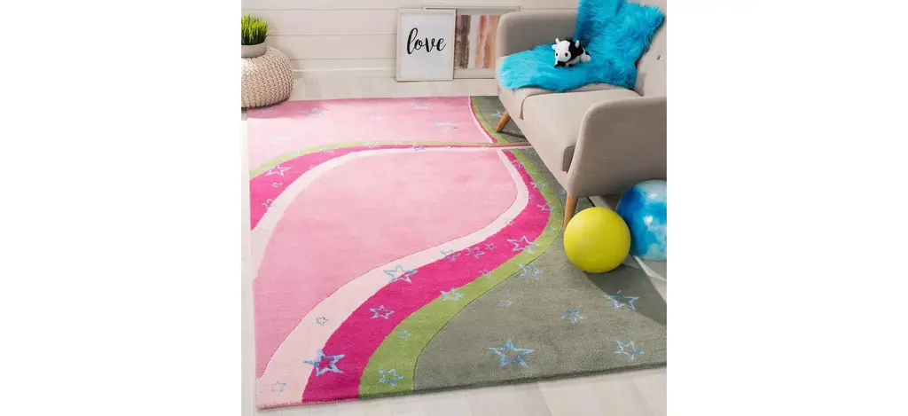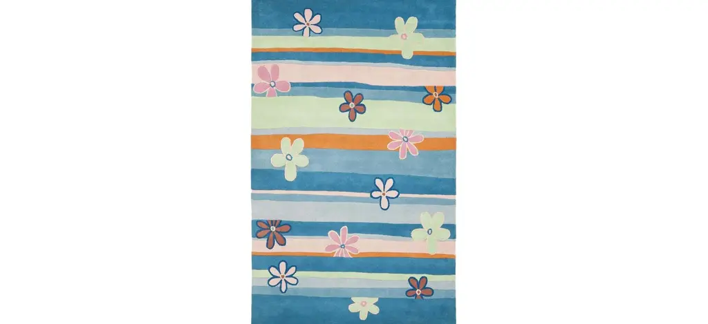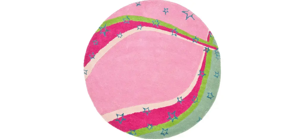The Oroma Kid's Rug features a colorful design with stars and stripes for a fun addition to your kid's room. These rugs are made with pure soft wool and hand-tufted to a cotton backing for added cushion.