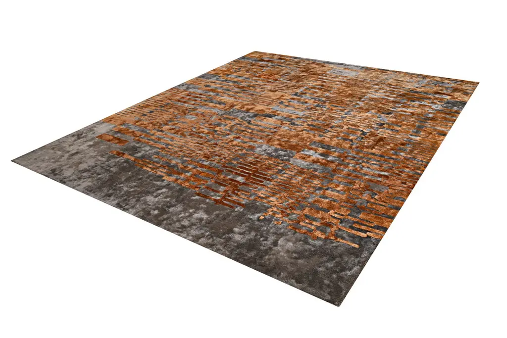 Osar Hand Tufted Modern Silk Rug In Rust & Beige Grey Colours By Hands