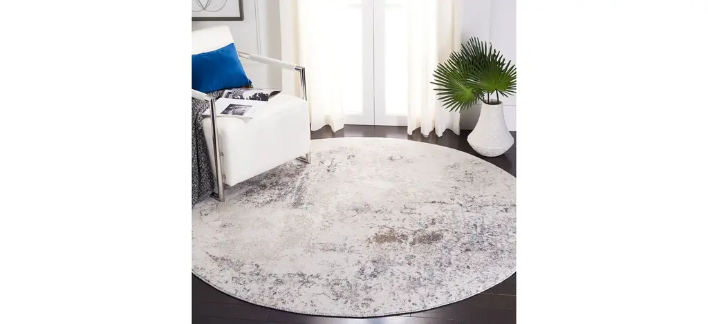 Modern art becomes contemporary-chic floor d_cor in the Osbourne Ivory & Gray Area Rug Round by Safavieh. Flaunting an alluring abstract patterns with a textured cut pile, these trendy floor coverings convey a sense of organic energy in contemporary living spaces.