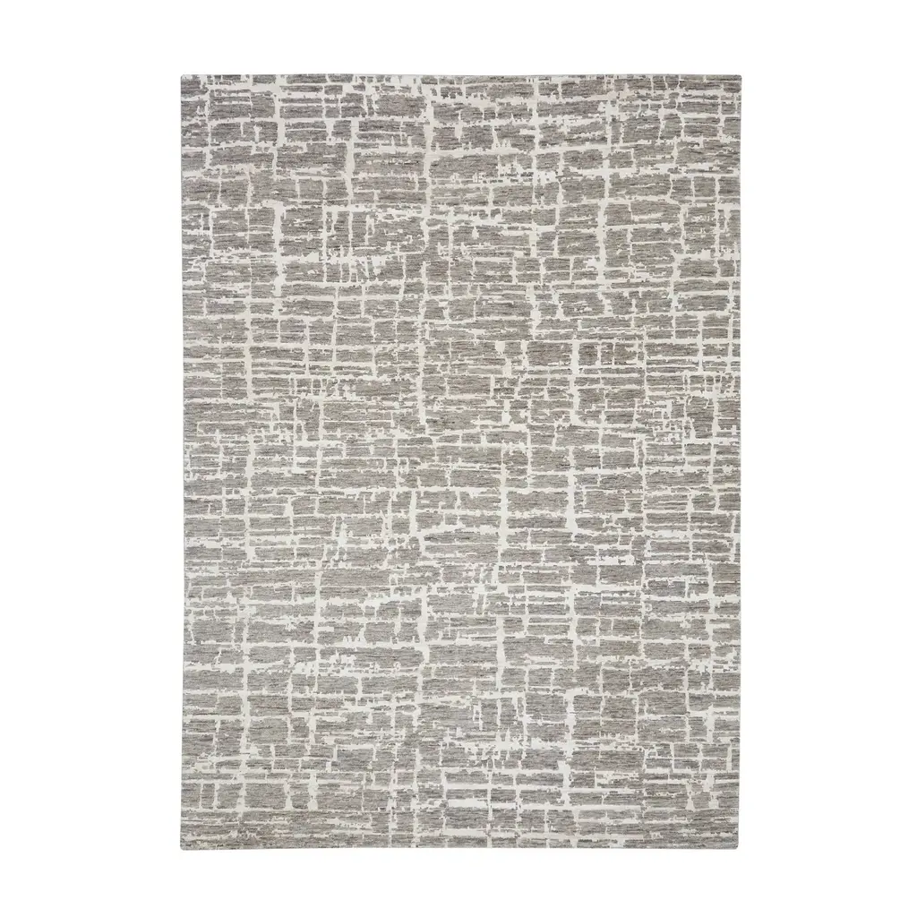 Oscillating stripes trace unpredictable pathways across our rug, a dynamic effect that's enhanced by abrash color and low, sheared pile. Viscose silk imparts lush softness and sheen into the rich hand-spun wool.
