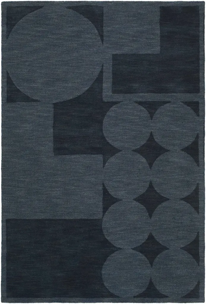 Collection: Oshae Colors: Navy Construction: Hand Loomed Material: 100% Wool Pile: Medium Pile Pile Height: 0.4" Styles: Contemporary Backing: Canvas Made In: India Thickness: 0.55" Price Range: $$$$$ (Affordable)