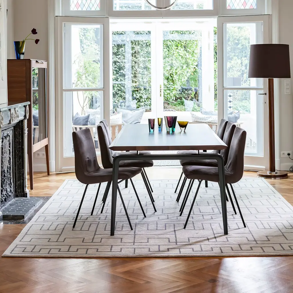 This magnificent rug will be an exquisite addition to any home. It was hand-knotted in Nepal and its 100 knots are in a soft blend of natural linen, silk and wool. The standard sizes are 170x240, 200x250, 200x300, 220x300, 250x300, 250x350, 300x400, 350x420, 350 x500, 400x600 cm for the rectangular rug and 250x250, 300x300, 400x400 cm for the square one. Custom sizes, colors, and materials can be ordered (please ask the concierge for prices).