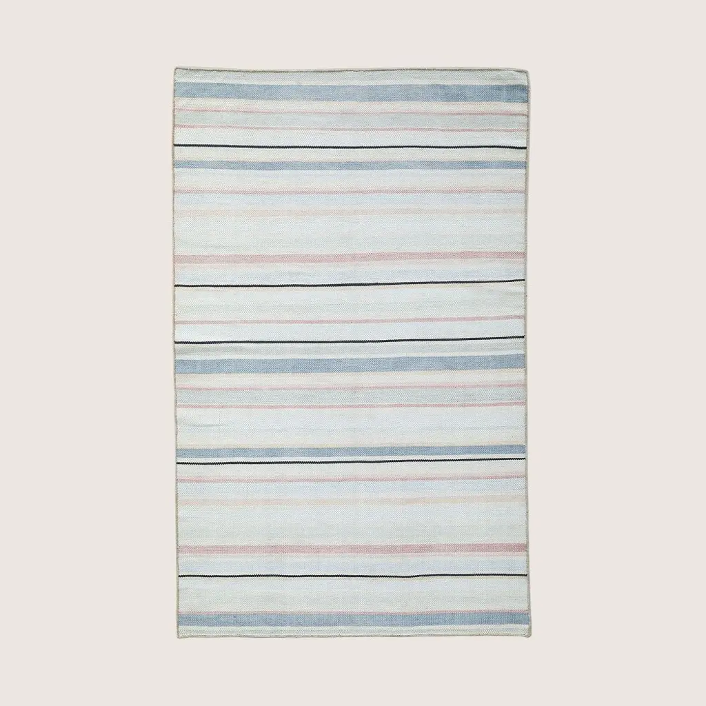 Kick back, relax, and turn up the brights. This RWS-certified wool-and-cotton rug’s flatwoven stripes are the pick-me-up your neutral room needs. An instant mood boost.