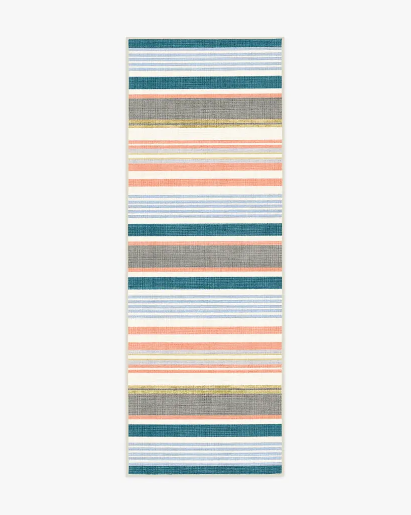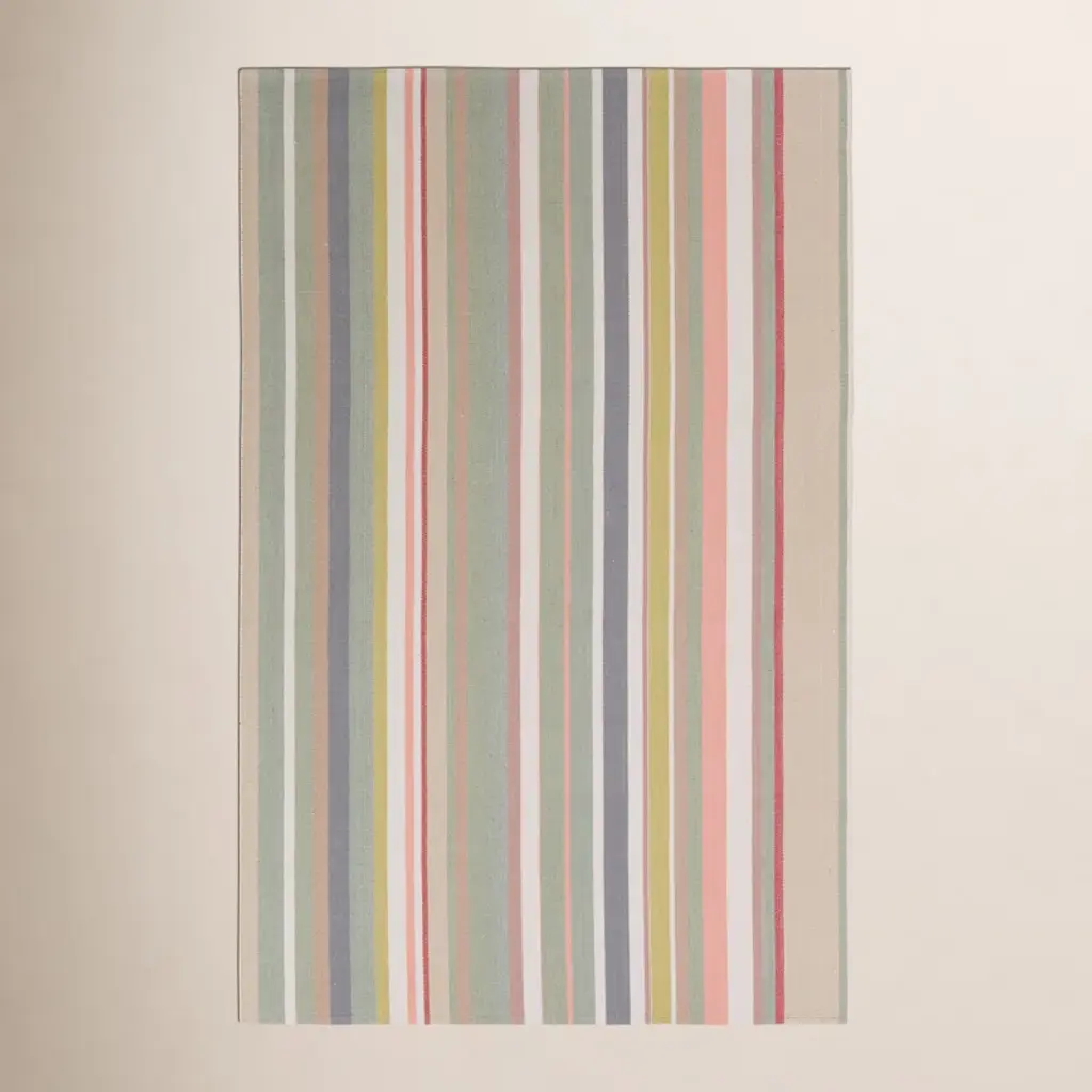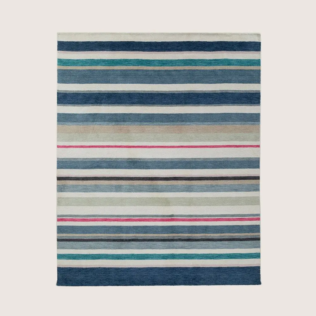 Kick back, relax, and turn up the brights. This RWS-certified wool-and-cotton rug’s flatwoven stripes are the pick-me-up your neutral room needs. An instant mood boost.