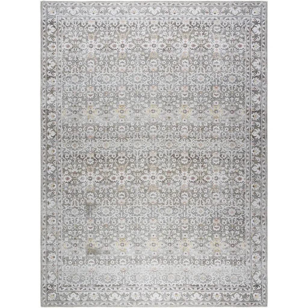 Experience the timeless elegance of the Rainier area rug, a special collaboration between PNW Home x Livabliss that beautifully blends updated traditional styling with modern durability. The rug showcases a classical medallion design with a faded antique look, perfect for adding a touch of vintage charm to any space. It's machine woven from durable polyester, making it ideal for high-traffic areas in your home. Its light and faded shades of pewter and green are bordered by an assortment of brown earth tones, creating a versatile palette that can complement a wide range of decor styles. This Turkish-made rug is also easy to care for - simply machine wash on cold delicate cycle and line dry. For optimal use, we recommend pairing this rug with a compatible rug pad. Elevate your living space with the Rainier area rug today!