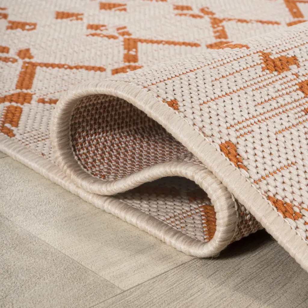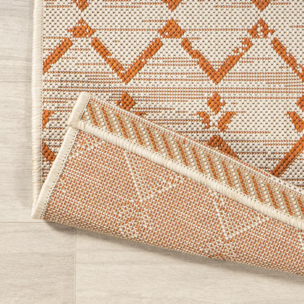 Ourika Moroccan Geometric Indoor/outdoor Rug, Cream/orange, 2X8