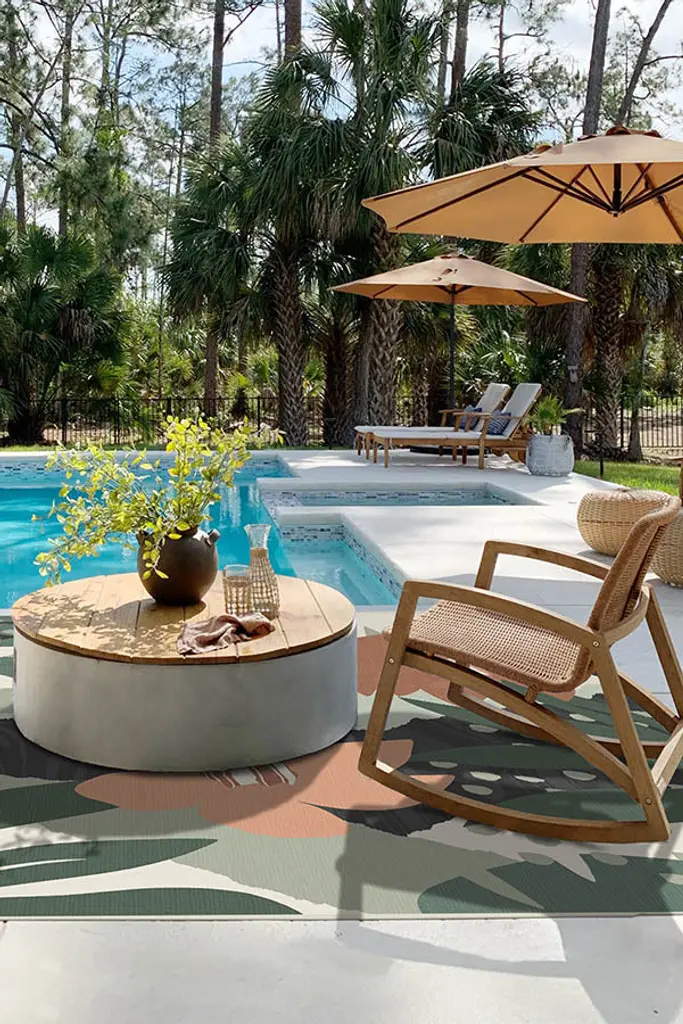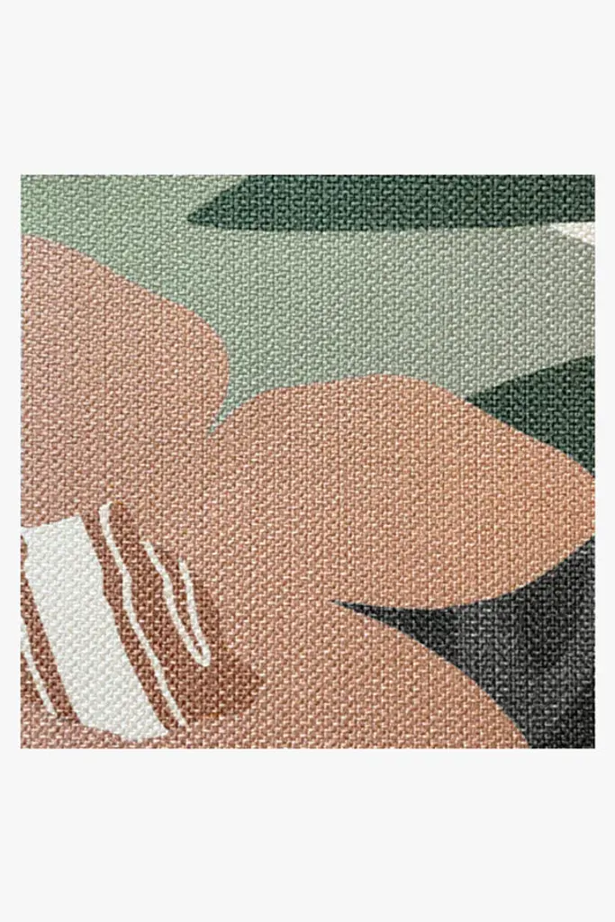 A playful interpretation of a tropical getaway. The lively design of our Arcadia Desert Sage Rug features abstract and floral elements in a muted color palette of fern and sage green, rosey pinks, greys, and cream. The extra-durable, machine-washable material is perfect for both outdoor and indoor use, especially high-traffic areas and those exposed to the elements.