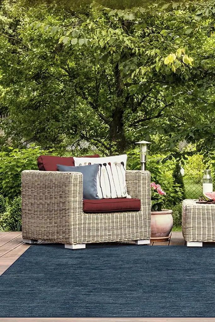 A versatile, go-with-anything design. Our Chunky Solid Blue rug features a heavy weave-like pattern with various hues of blue, giving this classic rug color a modern appeal. The extra-durable, machine-washable material is perfect for both outdoor and indoor use, especially high-traffic areas and those exposed to the elements.
