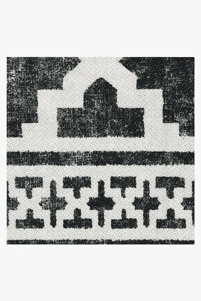 An elegant, statement-making design. Our Cleo Trellis Black Rug features a repeating pattern inspired by the Moroccan trellis motif with bordered ends in a black and white color palette. The extra-durable, machine-washable material is perfect for both outdoor and indoor use, especially high-traffic areas and those exposed to the elements.