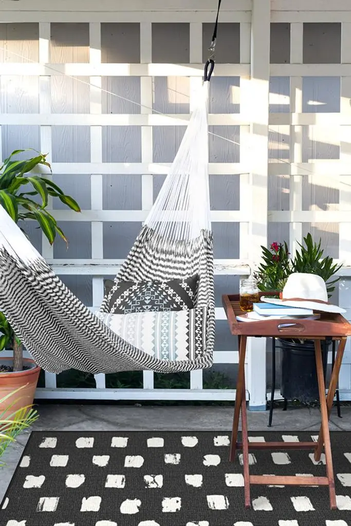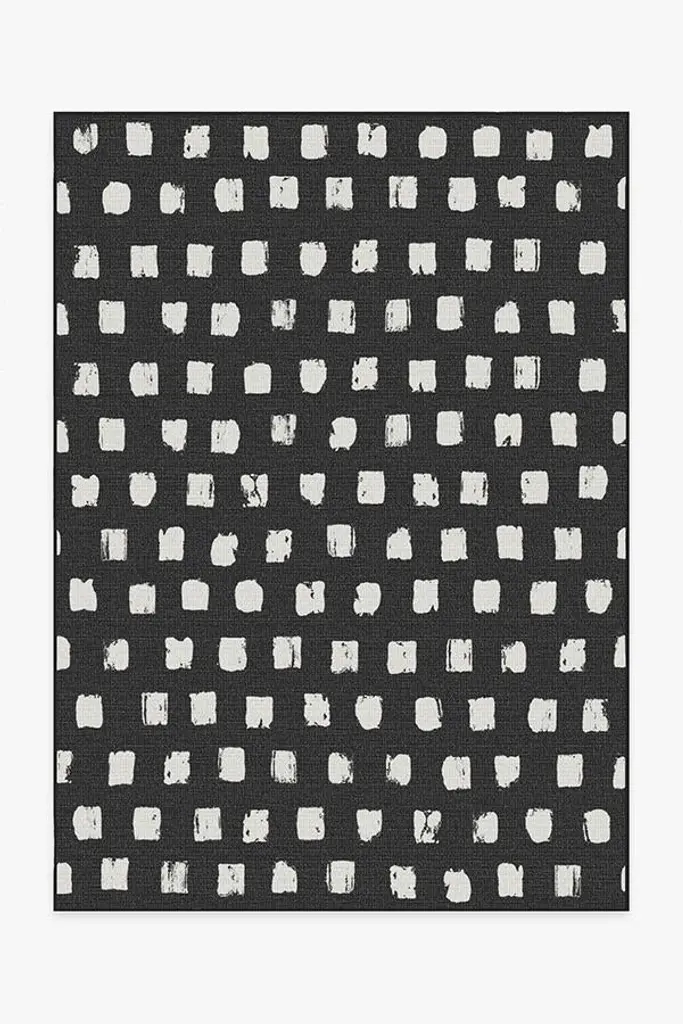 Give your space a charming modern look. Our Cobblestone Black Rug features distressed off-white squares floating on a black background. The extra-durable, machine-washable material is perfect for both outdoor and indoor use, especially high-traffic areas and those exposed to the elements.