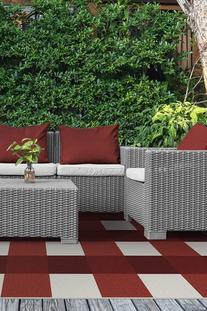 Outdoor Gingham Plaid Red & White Rug