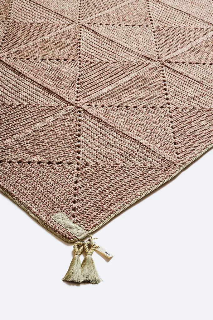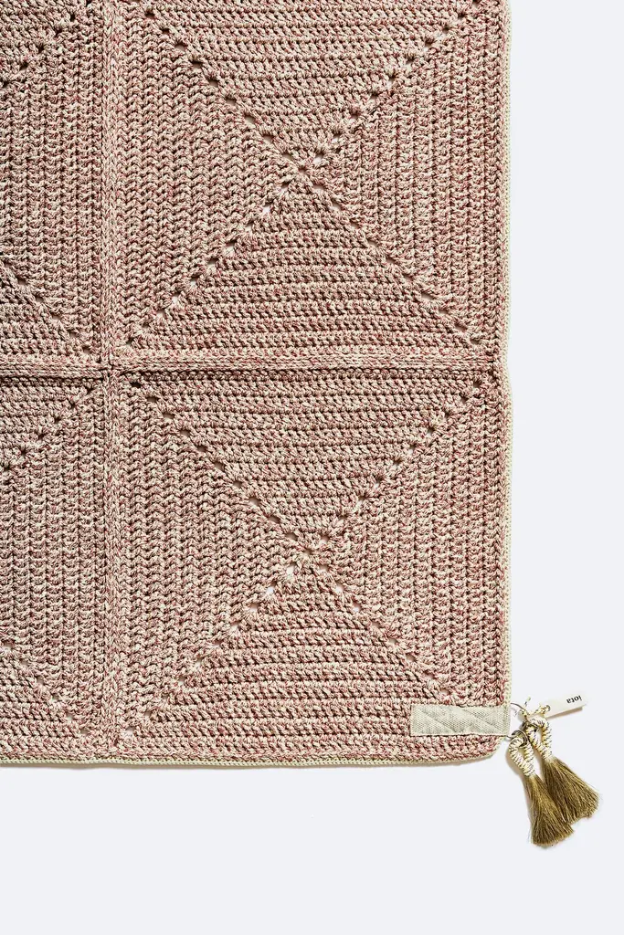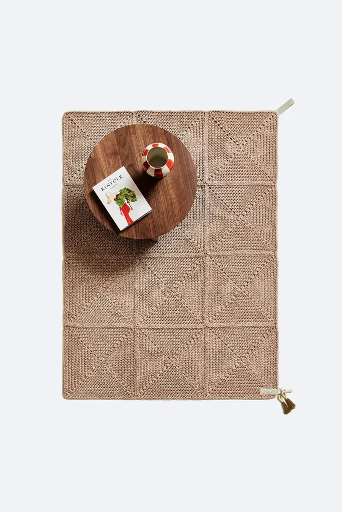 The Classic crochet granny square takes a contemporary twist in this outdoor rug. Large squares form the rug, framed with bespoke webbing. Handmade from UV protected bespoke iota yarn in earth tones, the textile is soft, yet durable and suitable for interior and exterior spaces. This collection pairs thick and artful crochet with smart, high level tailoring.In addition to being a contemporary design studio Iota soft living is a social project that employs, teaches and empowers women who are otherwise unable to work by teaching them the crochet technique and providing them work which they can carry out from their homes.Maintenance: Clean regularly with a vacuum cleaner, the use of chemical cleaning materials may harm the product. Try to address stains before they dry with a moist cloth. Products may vary up to 5% as objects are handmade.