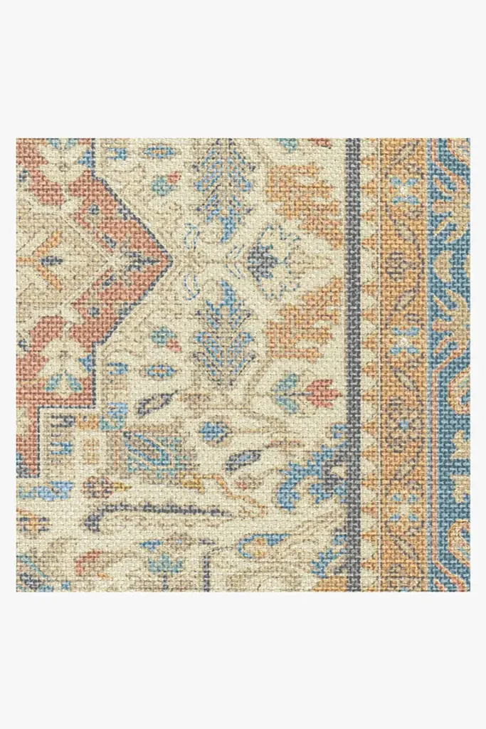 Our Kamran Sunset Orange Rug brings the geometric grandeur of a traditional Heriz design to any indoor or outdoor space. This Persian-inspired vintage design features a large medallion pattern and ornate border, brought to life with bright oranges, deep blues, warm corals, and a neutral background. The extra-durable, machine-washable material is perfect for both outdoor and indoor use, especially high-traffic areas and those exposed to the elements. Rug colors may vary slightly according to your device and the lighting in your space.