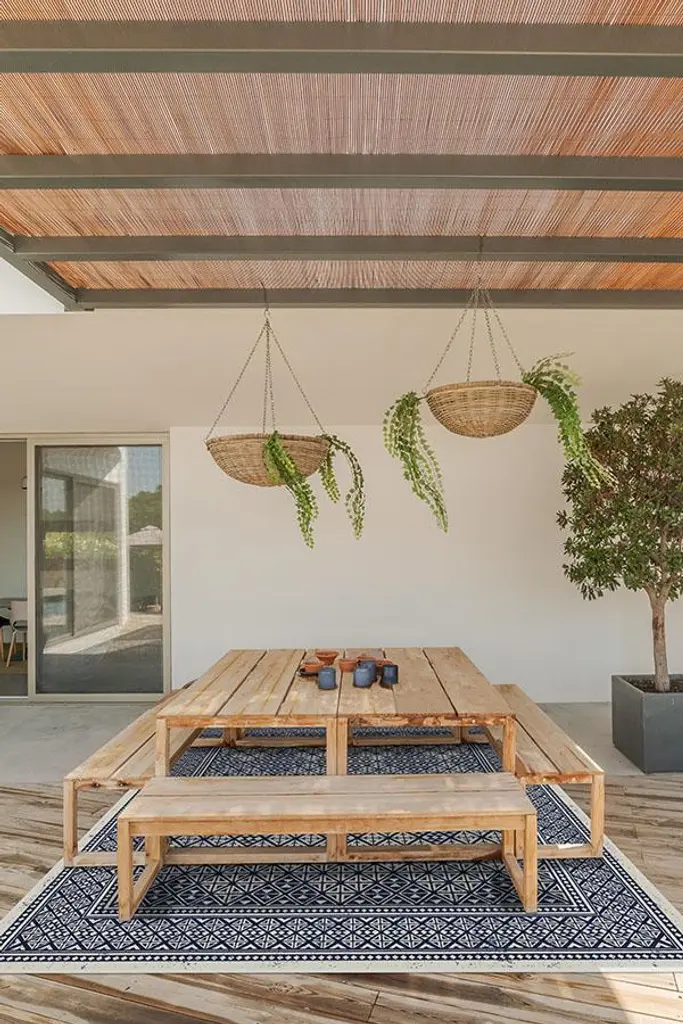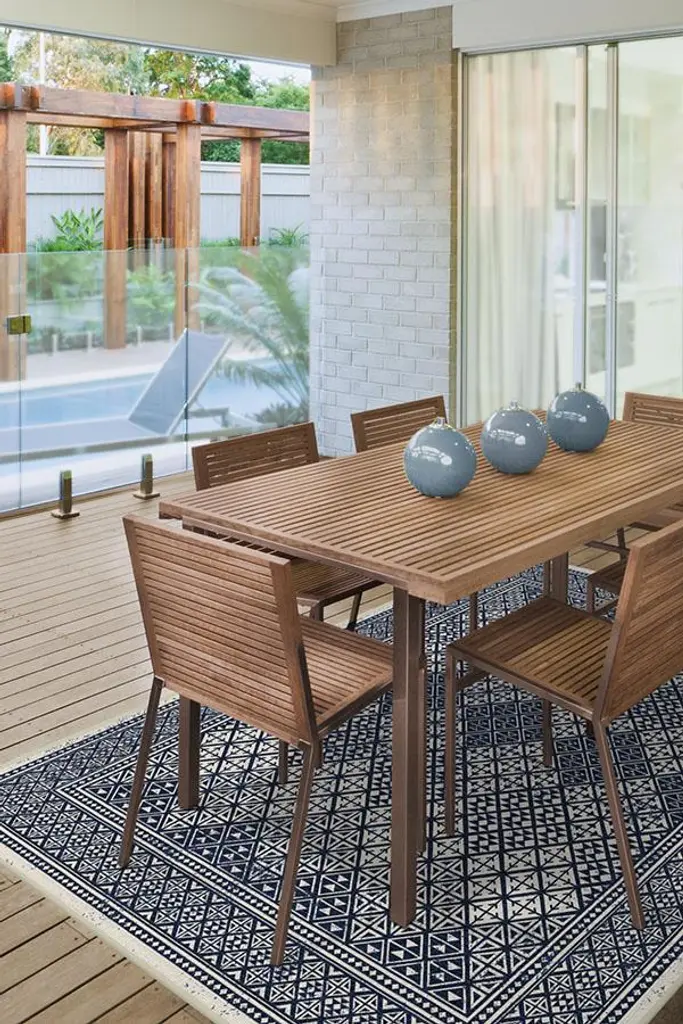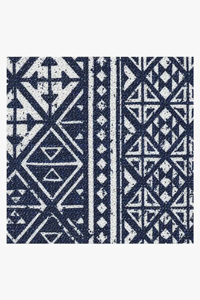 More than meets the eye. This ornately bordered royal blue and white outdoor rug features an intricate tile pattern made up of smaller diamonds. Machine-washable and extra-durable, this outdoor rug is perfect for high-traffic areas in your home, indoor or outdoor.