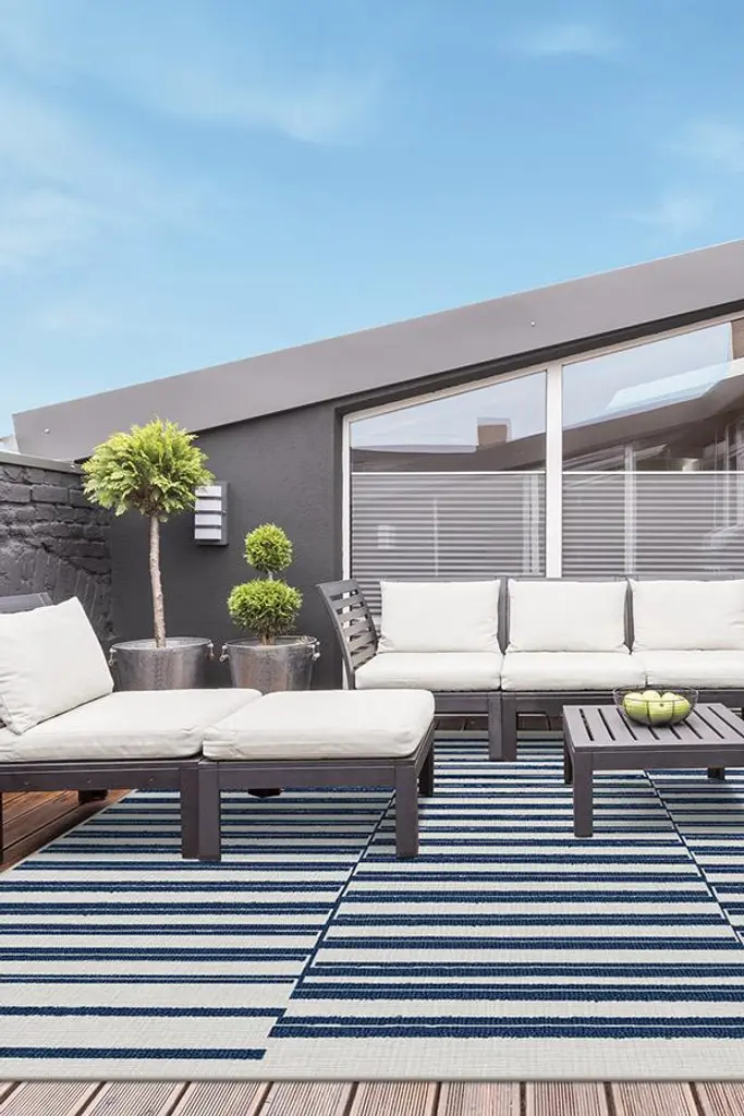 Outdoor Offset Stripe Navy Rug