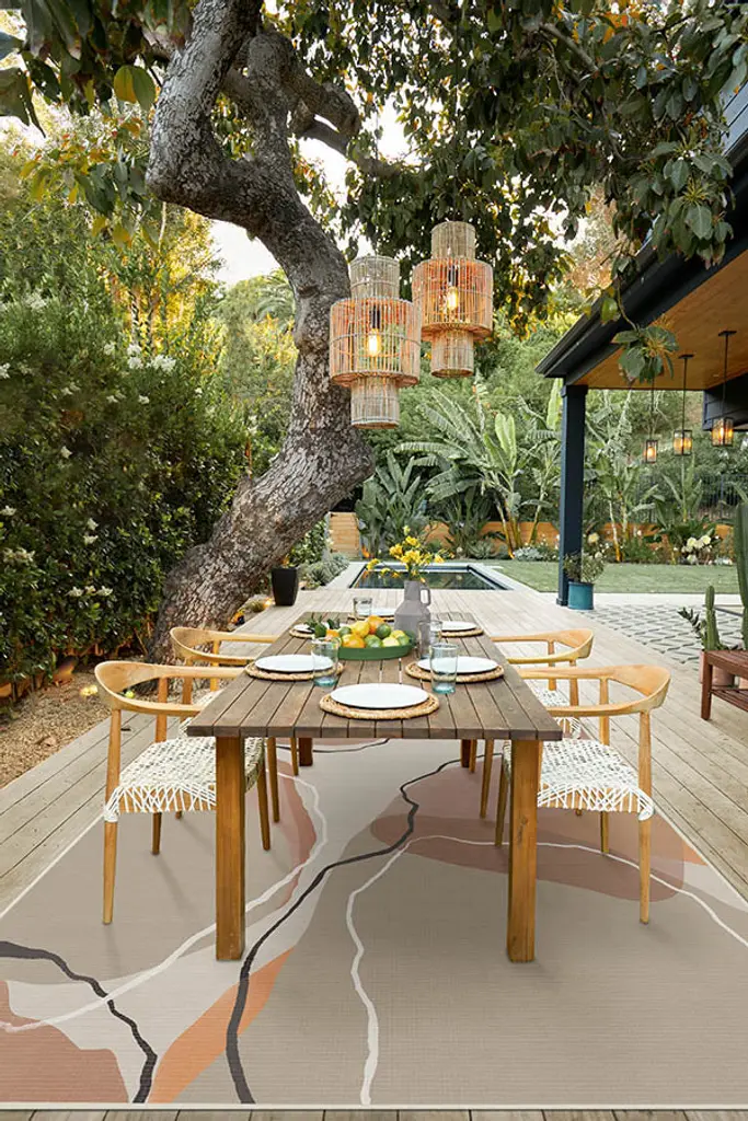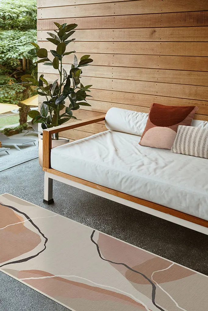 Find comfort in nature with our Petra Copper Rose Rug. Natural formations of rose, orange, and terracotta color blocks are stacked and arranged organically around the outer border leaving the middle ground open to draw your attention to the center. The delicately overlapping black and white linework framing, along with the soft grey neutrals and light cream background, give each block depth, dimension, and interest. Made from our extra-durable, machine-washable material that's perfect for both outdoor and indoor use, especially high-traffic areas and those exposed to the elements. Rug colors may vary slightly according to your device and the lighting in your space.