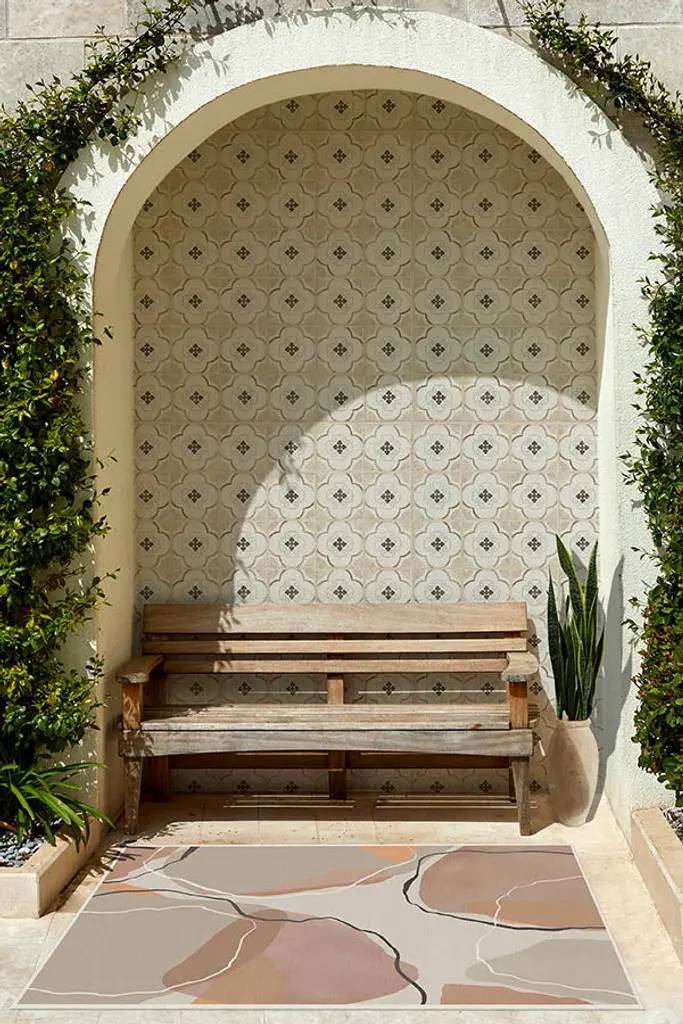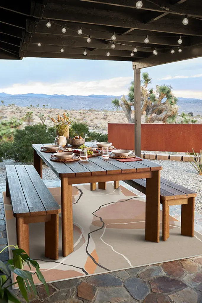 Find comfort in nature with our Petra Copper Rose Rug. Natural formations of rose, orange, and terracotta color blocks are stacked and arranged organically around the outer border leaving the middle ground open to draw your attention to the center. The delicately overlapping black and white linework framing, along with the soft grey neutrals and light cream background, give each block depth, dimension, and interest. Made from our extra-durable, machine-washable material that's perfect for both outdoor and indoor use, especially high-traffic areas and those exposed to the elements. Rug colors may vary slightly according to your device and the lighting in your space.