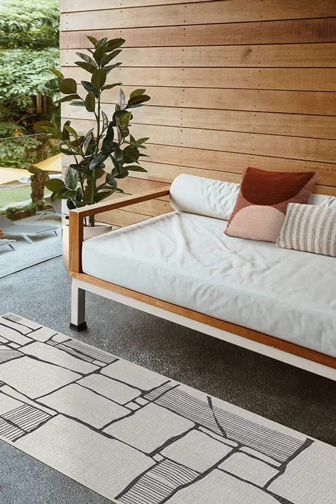 Add a touch of style to any space with our Rune Black & Ivory Rug. This modern design features organic gridlocked shapes drawn together with artistic black linework and smooth, linear textures on an ivory background. Made from our extra-durable, machine-washable material that's perfect for both outdoor and indoor use, especially high-traffic areas and those exposed to the elements. Rug colors may vary slightly according to your device and the lighting in your space.