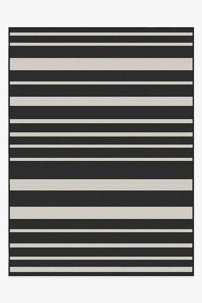 Give your space a nautical touch. Our Sailmaker Stripe Black Rug has a combination of thin and thick black and white stripes with a subtle herringbone texture. The extra-durable, machine-washable material is perfect for both outdoor and indoor use, especially high-traffic areas and those exposed to the elements.