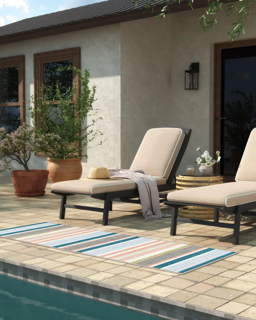 Outdoor Tropez Stripe Teal Multicolor Rug