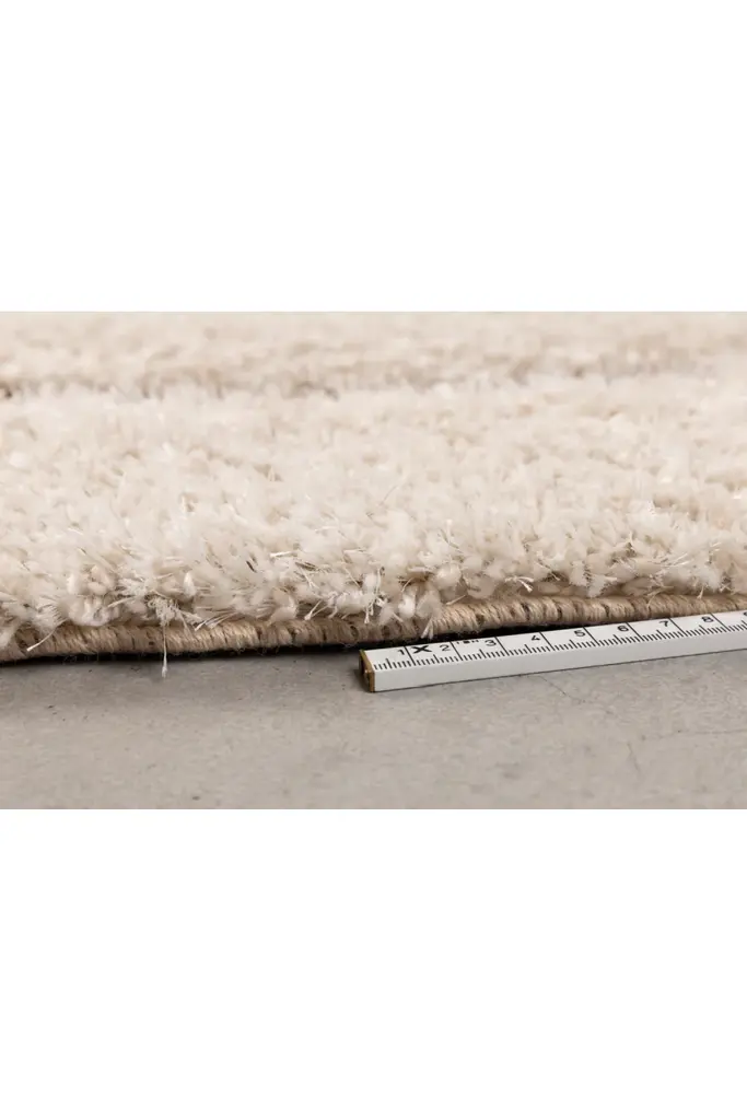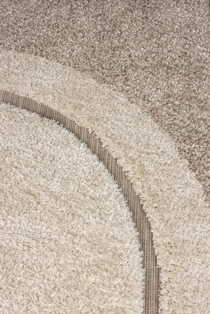 Spark has a sand-colored color palette and comes into its own under the dining table or in the living room. The deep-pile carpet is woven from a mix of wool and polypropylene. It's so soft it feels like you're walking on clouds. The circle is created by a special weaving technique, leaving an extra circle all around.