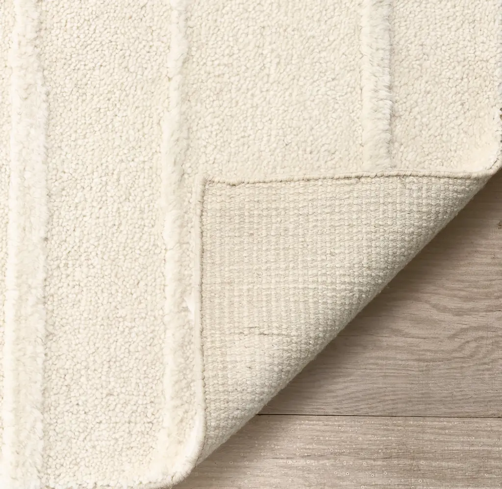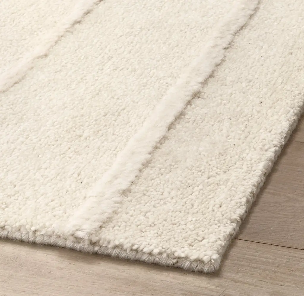 Hand-sculpted lines bring modernist dimension to Paavai's lush, monochrome pile, knotted by hand from New Zealand wool. The chunky, undyed yarns are spun by hand to enhance the wool's organic character and rich variation.