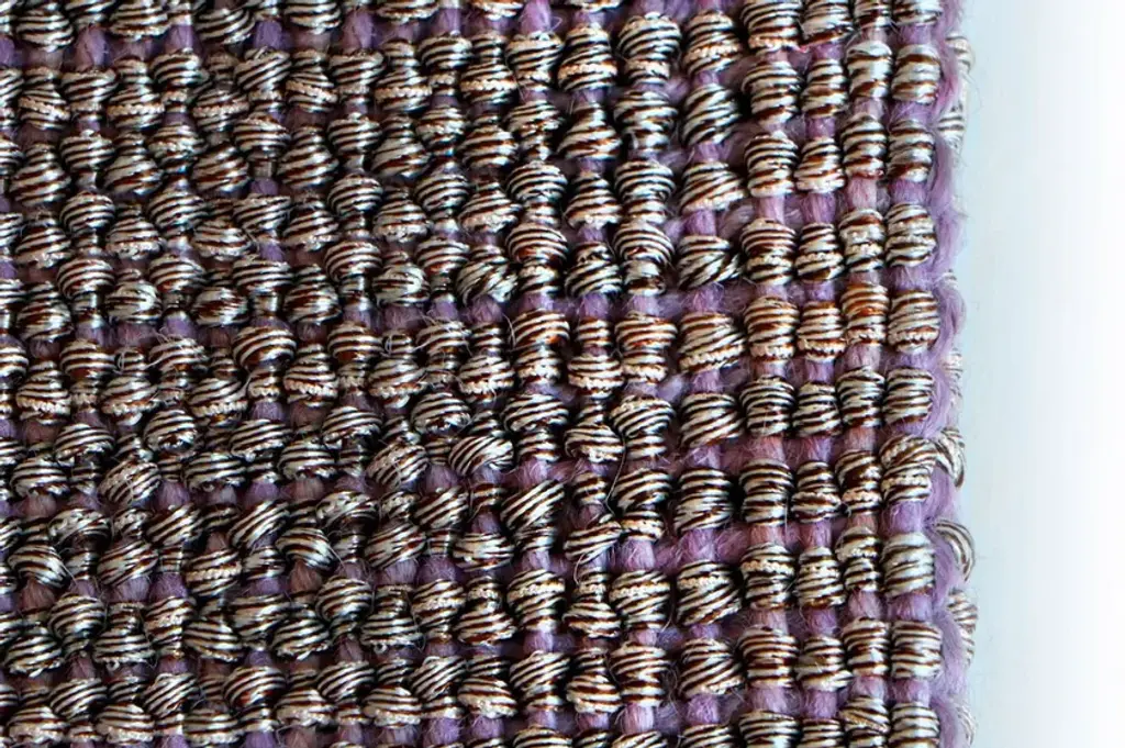 “Paglietta” is a luxurious and functional contemporary rug by designer Deanna Comellini, founder and art director of Italian brand G.T.DESIGN.Sophisticated yet extraordinarily practical, ”Paglietta” is possibly the perfect modern rug. It combines the age-old jute fiber and a glossy high-performance exclusive yarn by G.T.DESIGN, making it highly resistant and suitable for interiors and sheltered outdoor spaces. These hand-woven yarns produce irregular and unique curls on the surface of the rug. The unevenness of the hand-weaved texture combined with the technical thread makes an exceptional rug delightful to touch and rich in chromatic nuances. In the color "Lilla", a light tone of violet, “Paglietta” works exceptionally well anywhere in the home. It is ideal under tables, kitchen-tables, beds, and other furniture.