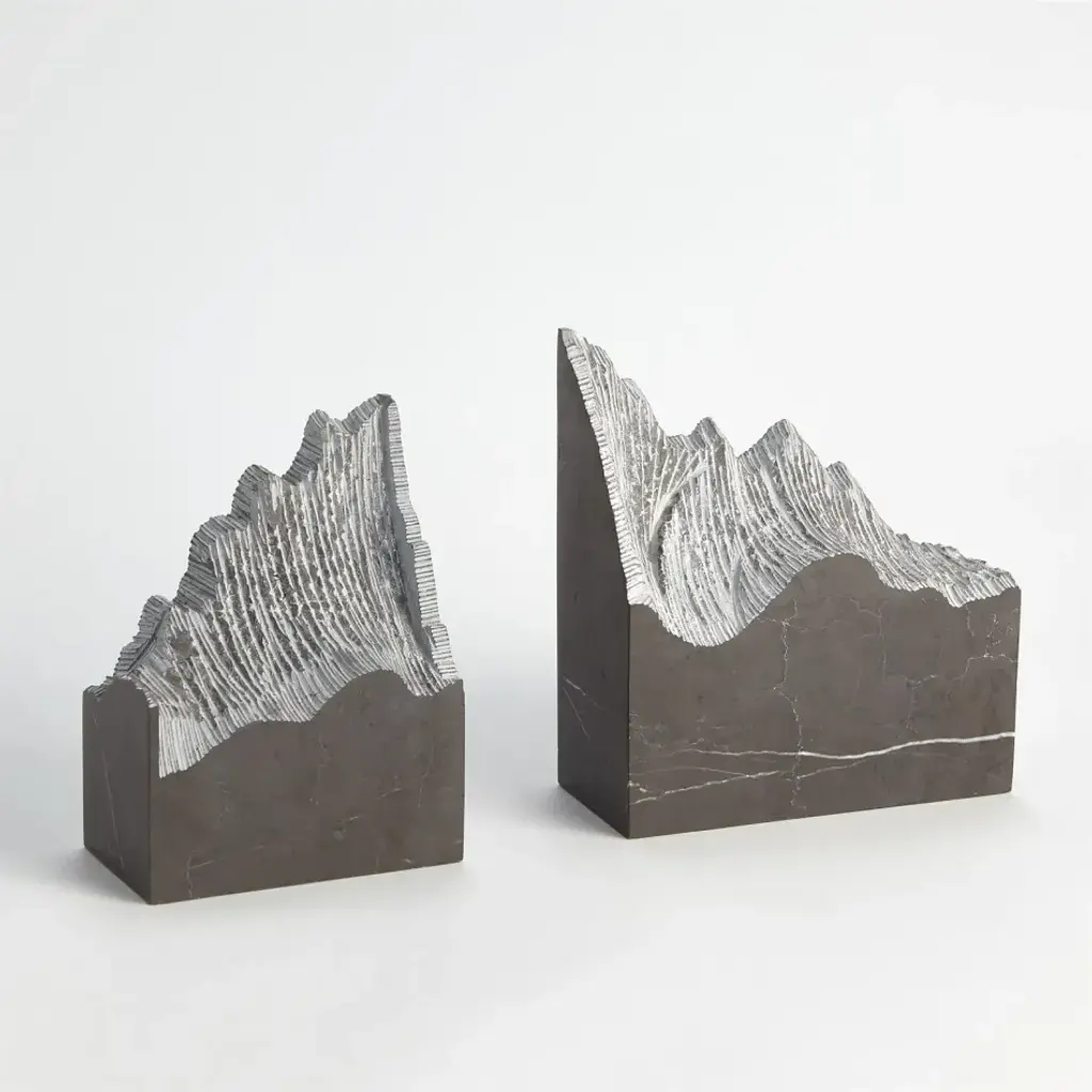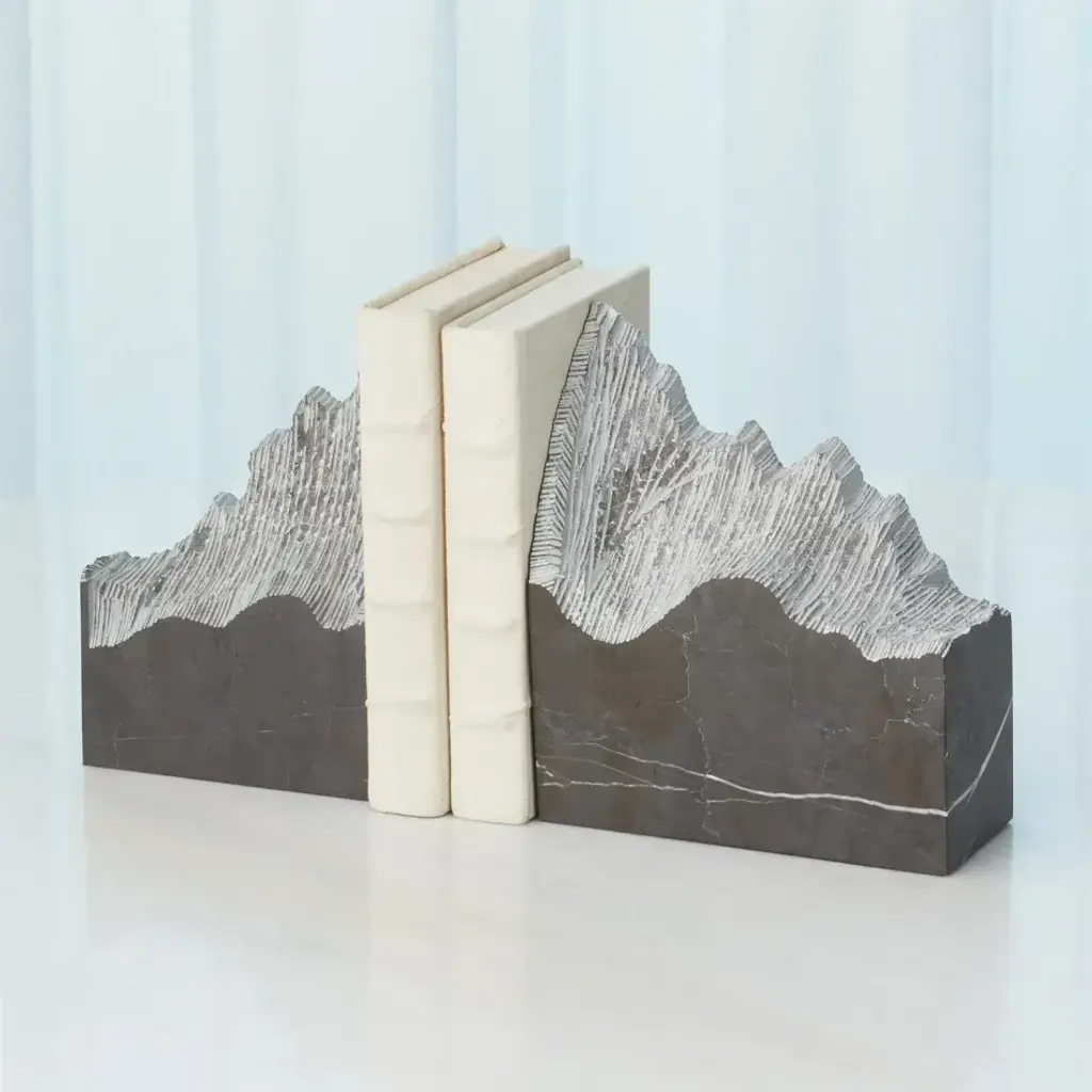 Pair Mountain Summit Bookends Grey Marb (Pair)