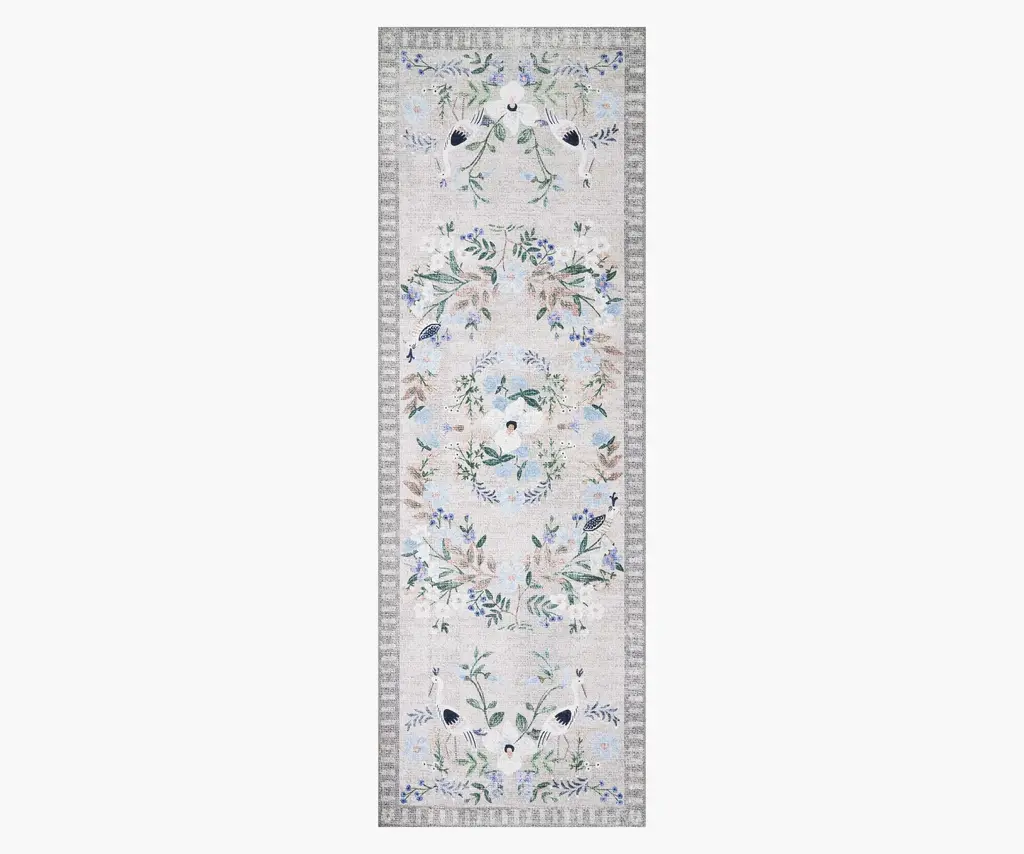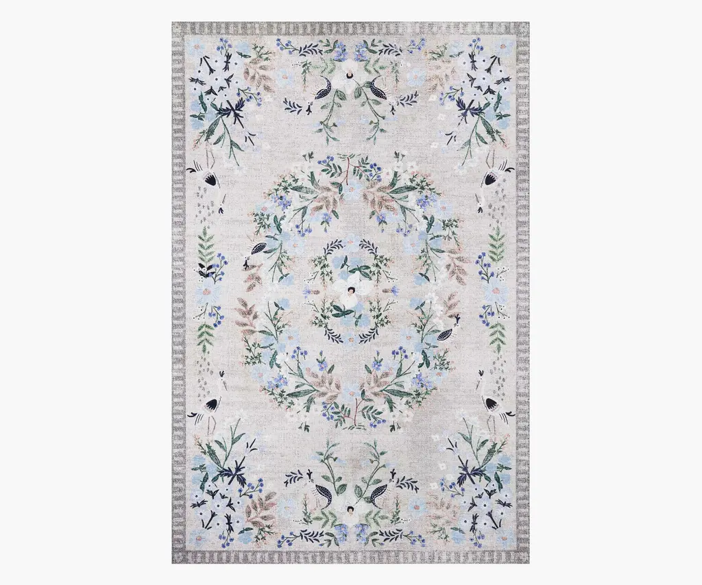 From the Rifle Paper Co. × Loloi collection, this rug emulates the lavish garden of the famous Luxembourg Palace. The style is part of our Palais collection, which marries our signature florals with traditional motifs. Each rug features printed patterns on a soft polyester base that is both colorfast and stain resistant. The layout and scale of our rugs is adjusted to accommodate each available size, and may be different than what is pictured here. Images of each size are available by hovering over the desired size on our desktop site.