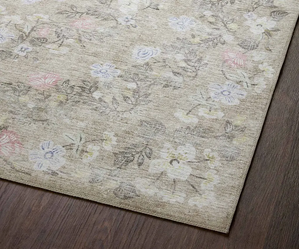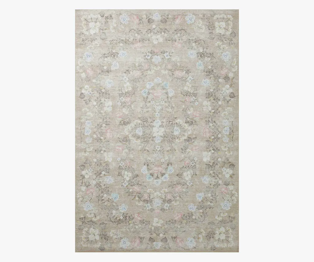 The botanical designs of the Windsor rug encircle a central medallion like a crown, dotted with beautiful blooms. The style is part of our Palais collection, which marries our signature florals with traditional motifs. Each rug features printed patterns on a soft polyester base that is both colorfast and stain resistant. The layout and scale of our rugs is adjusted to accommodate each available size, and may be different than what is pictured here. Images of each size are available by hovering over the desired size on our desktop site.