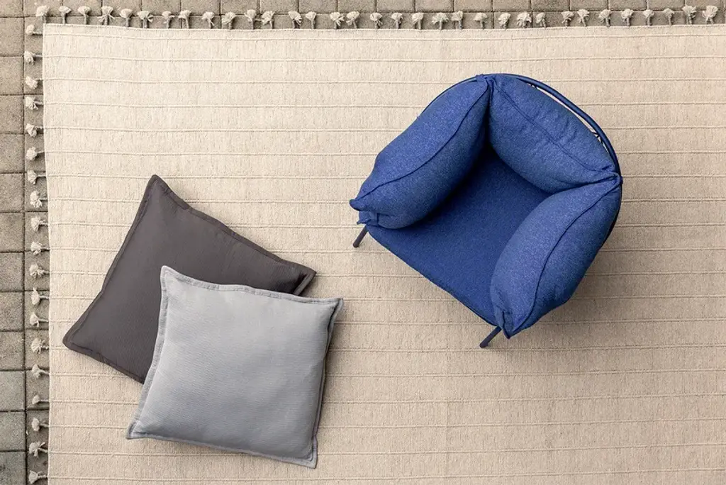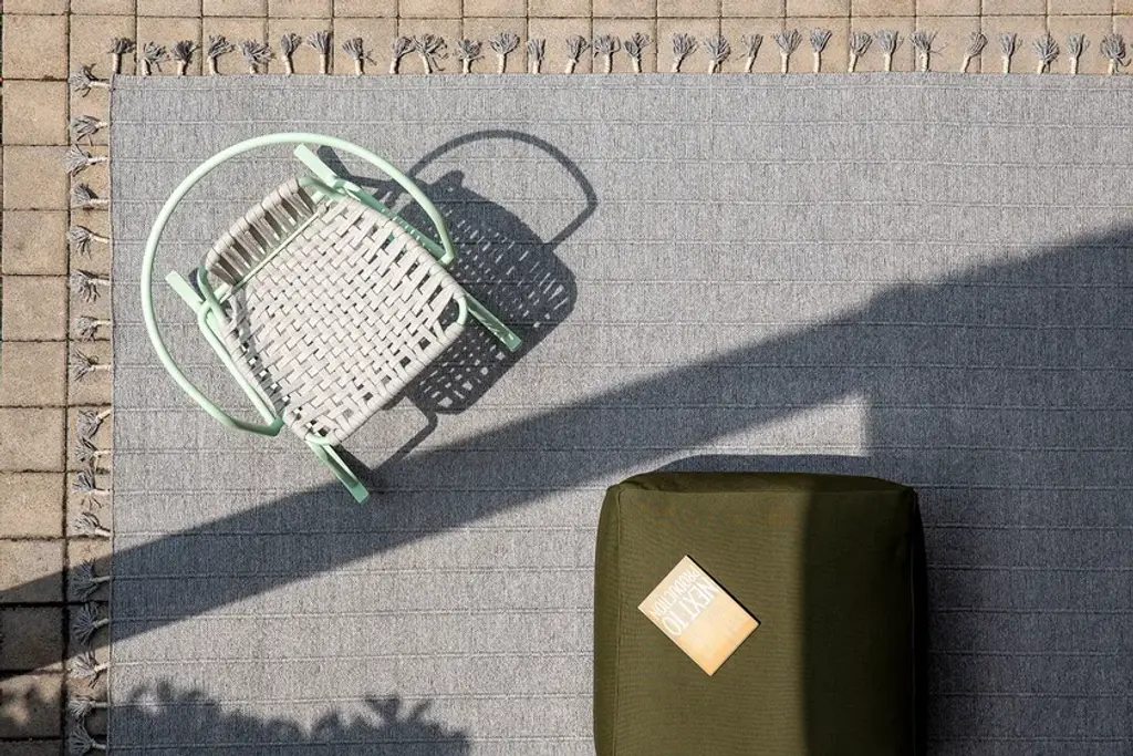 Rug assembled by hand in synthetic ‘w-proof’® fiber. Antibes is made by combining three different flat ropes and straps all in synthetic fibers. The border is sewn with a fabric of the same yarn. Colors CR|01 (cream | contrasting fringes) DG|01 (dark grey | contrasting fringes) LG|01 (light grey | contrasting fringes) BR|01 (brown | contrasting fringes) Technical information Quality: Handknotted "sumak" rug. Synthetic 'w-proof' yarn, UV and weather resistant Thickness: 8mm approx. Weight: 2,5 Kg/sqm approx. The configuration (size + color) must be completed to obtain the final price of the product.‘Plein Sud’ is a line of carpets for the residential and the ‘Contract’ outdoor, combining comfort and elegance, design experience and excellent raw materials. It ‘a collection of innovative products for the outdoor environment designed with the same comforts of home interiors, for the pleasure of living in beautiful surroundings. Thanks to the finish of the mélange yarn, with elegant shades and edged in different colours, the collection Plein Sud becomes a quality complement both for outdoor and indoor spaces. The carpets are made on hand looms with a synthetic fiber. The particular process that combines the plots of the frame to the manual applications, gives these products the thickness, the quality and the elegance of indoor carpets. The yarn is perfectly suitable for outdoor environments thanks to its durability and its resistance to atmospheric agents. All the models of the collection ‘Plein Sud’ have a high UV stability, are water repellent and can be stain-proof and anti-mold treated. Carpets can also be custom made, after consultation with our technical department. Plein Sud is 100% ‘renewable design’