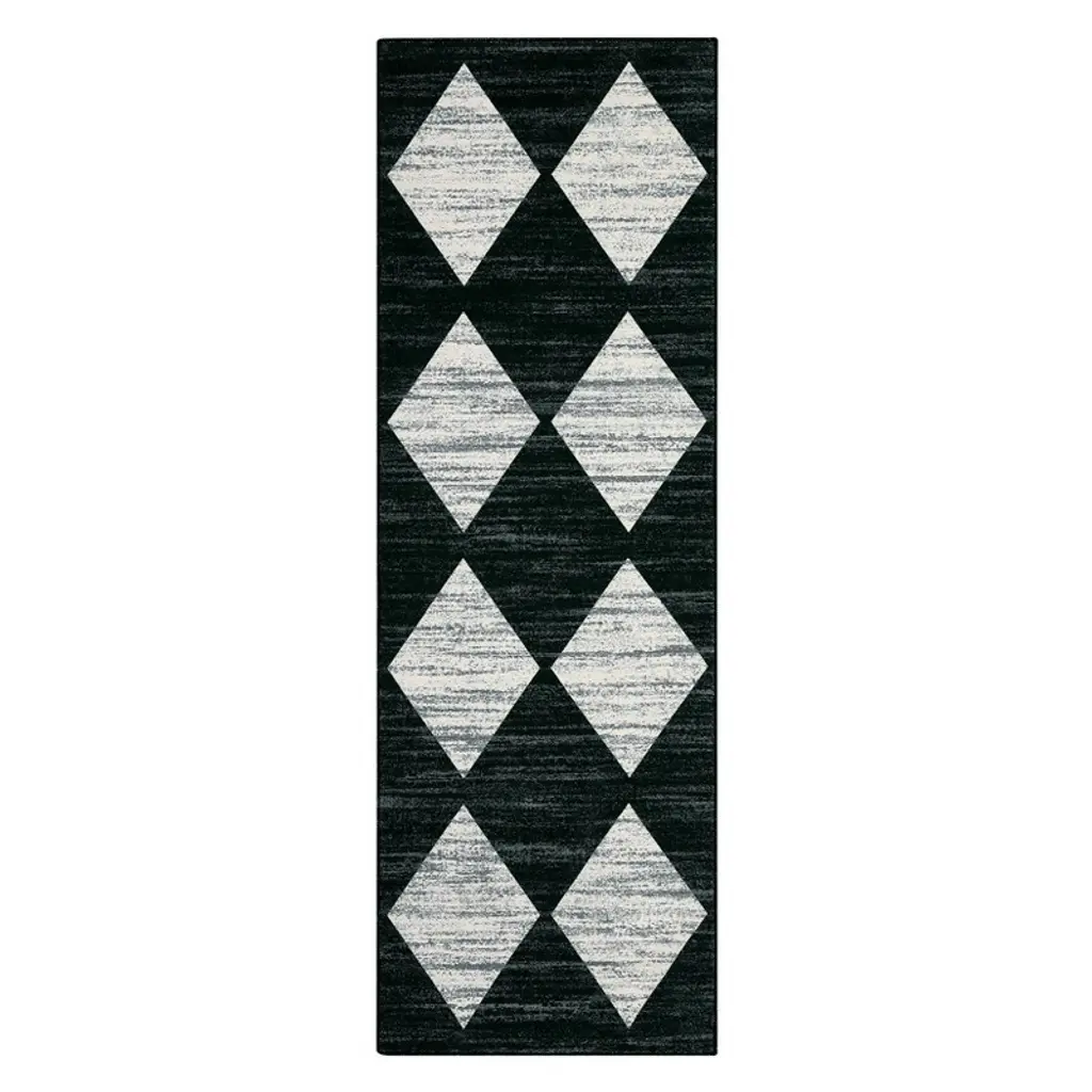 A whimsical pattern in a classic color palette. Our Palazzo Soft Black Re-Jute Rug is inspired by the harlequin floors seen in Italian palatial buildings. The eye-catching design features a soft, weathered black shade on a jute-colored background and is sure to be a distinct decor piece in a variety of spaces. The woven jute-like material is made from recycled and virgin polyester, and polyurethane that won't shed or fray. Water-resistant, stain-resistant, and machine-washable.