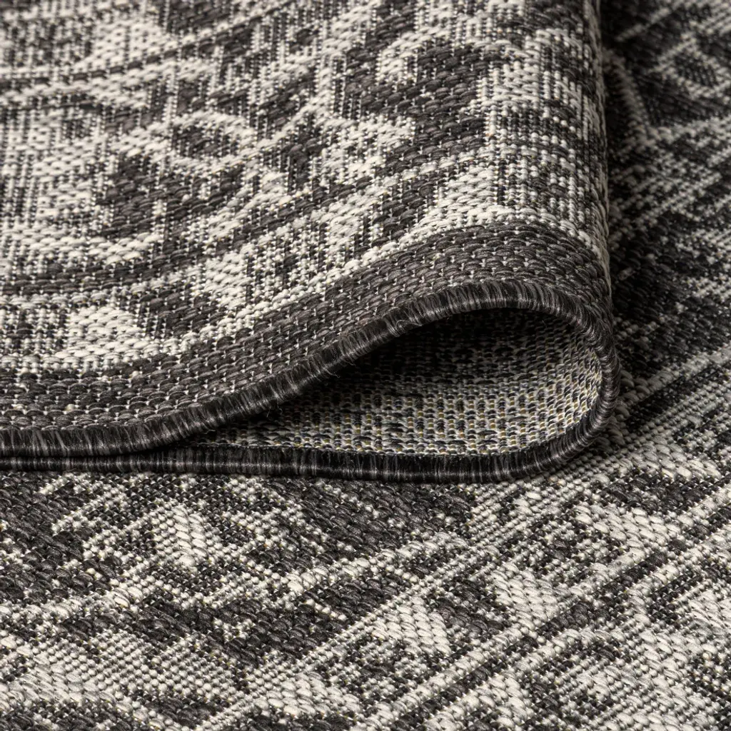 With its twining vines and ornate border, this traditional pattern is an elegant addition to your outdoor porch or patio. Varied tones of charcoal and black mingled with a light gray pattern give this rug a rich, hand-woven texture. The flatweave design is great for high-traffic spaces indoors too.Features:• Flat-weave construction of 100% polypropylene• Black and gray with a handwoven mingled texture• Water resistance with 0.19" pile• 100% Polypropylene• No backing, use of rug pad is recommended (sold separately)• Power Loomed in Turkey• Actual Dimension: 2 ft. 2 in. x 8 ft.• Color: Black/Gray• Thickness measures: 0.19 in.• Available in multiple sizes and/or colorsRug Care:• Durable and easy-care - just sweep or hose down with mild soap and water• Packing and shipping may cause temporary creases in rugs, which will flatten out after a week on the floor; to expedite the process, try back-rolling your rug before laying it down, and then allow ample time for the remaining creases to relax• Please Note: Due to differences in monitors, some rug colors may vary slightly. Lengths and widths may vary from the published dimensions. Patterns may vary slightly according to shape and size selected.About us:Style your floors with JONATHAN Y. By combining fine craftsmanship and design, this New York creative studio is bringing fashion to your floors. The collection mixes sustainable organic materials, vibrant colors and trend worthy styles to create JONATHAN Y''s distinctive catalog of rugs.