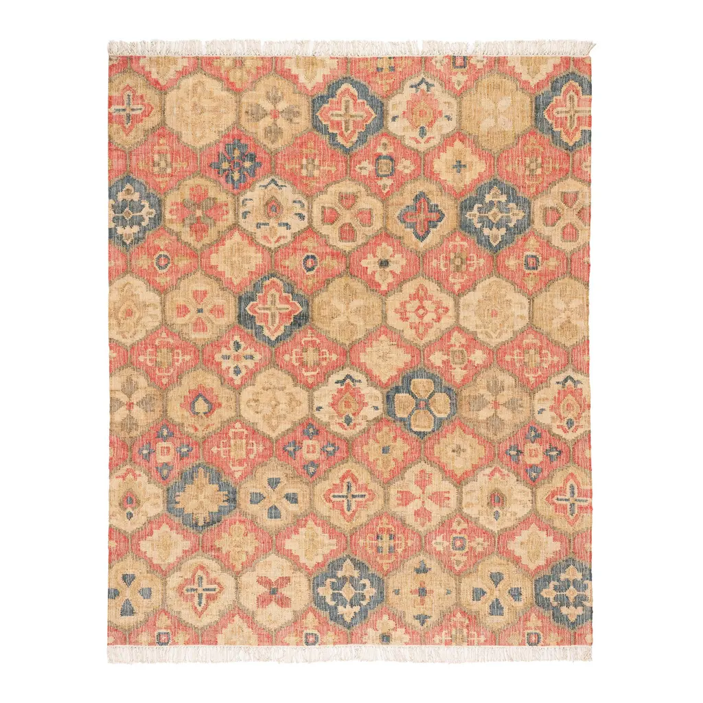Timeless quatrefoil medallions in shades of sky, denim, natural and ivory, dhurrie woven from hardworking jute, with a touch of cotton for softness. Sustainable, biodegradable and renewable, jute adds orglamic character and rustic chic to any room.