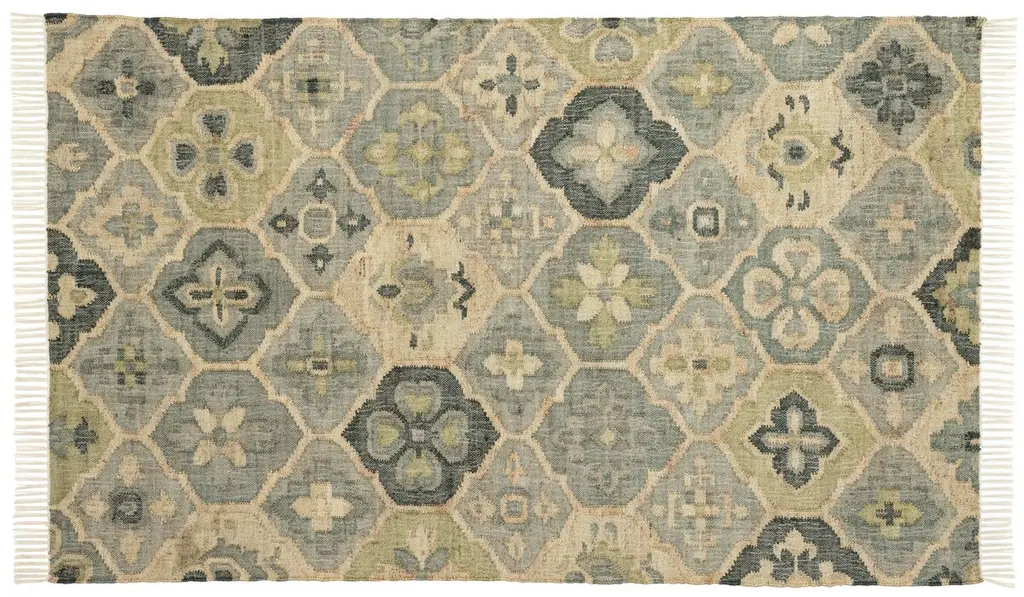 Eco-friendly jute brings earthy texture to the timeless quatrefoil motif of this handwoven dhurrie. The muted palette ensures that this rug will complement a wide range of rooms. A rug pad is recommended to help prevent slipping.