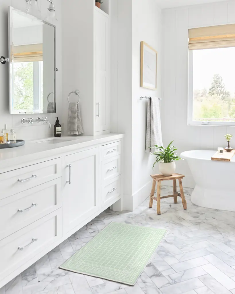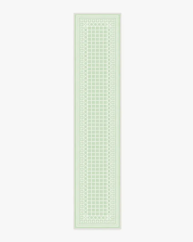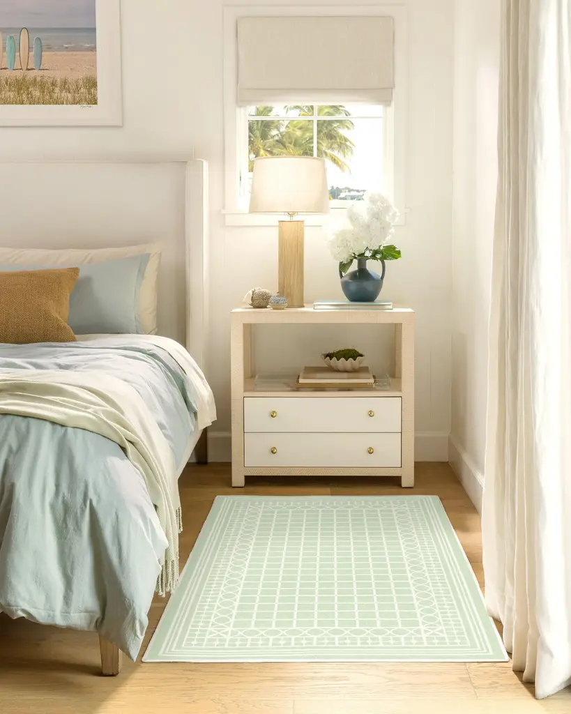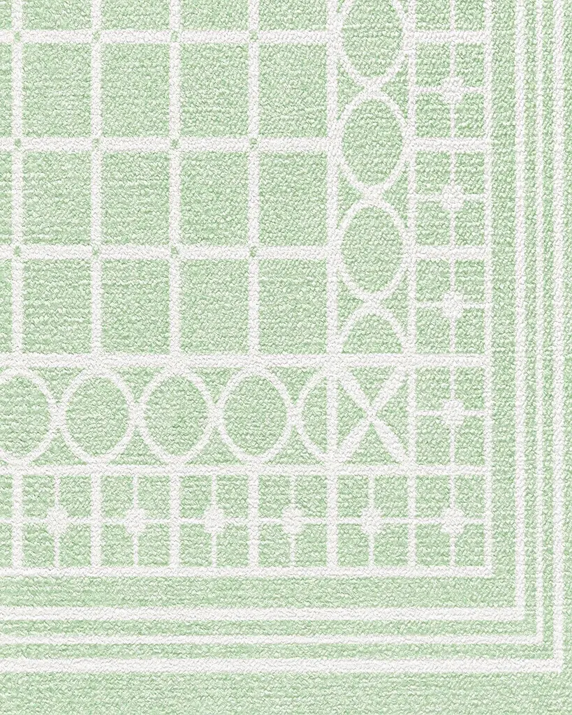 Vacation starts here. With breeze block motifs pulled from Gray Malin’s travel photography, the sage green Palm Beach Rug brings laid-back elegance to your space. Crisp ivory details complete the look for that just-checked-in feeling. Water-resistant, stain-resistant, and fully machine-washable. Colors may vary by device and lighting.